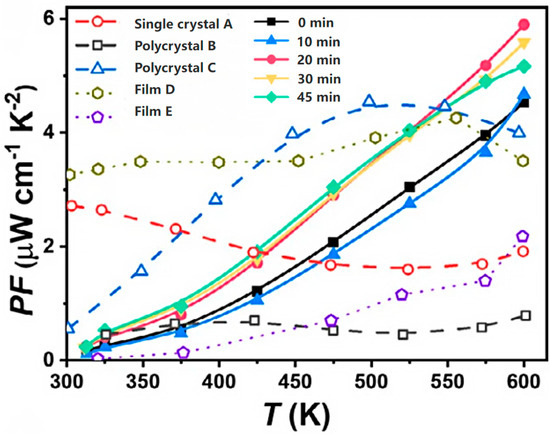 Relationship diagram between PF and temperature of doped SnSe thin films [35].