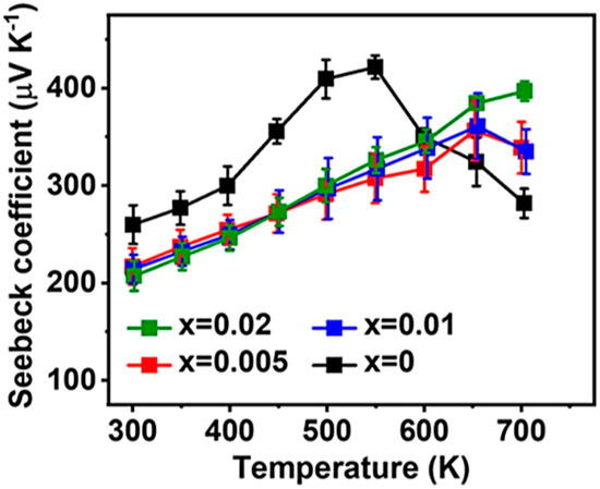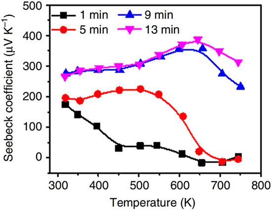 Diagram showing the relationship between Seebeck coefficient and temperature of Te doped SnSe thin films [37].
