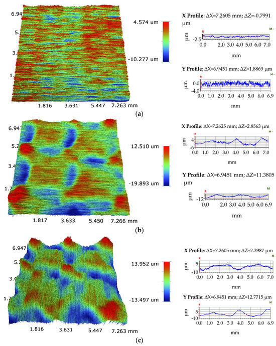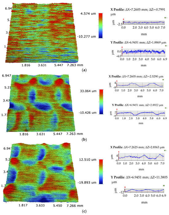 - The surface topography and roughness of the formed part were measured using a white light interferometer under a 5x objective lens over a surface area of 7 × 7 mm2. The surface roughness can be directly obtained with a white light interferometer.