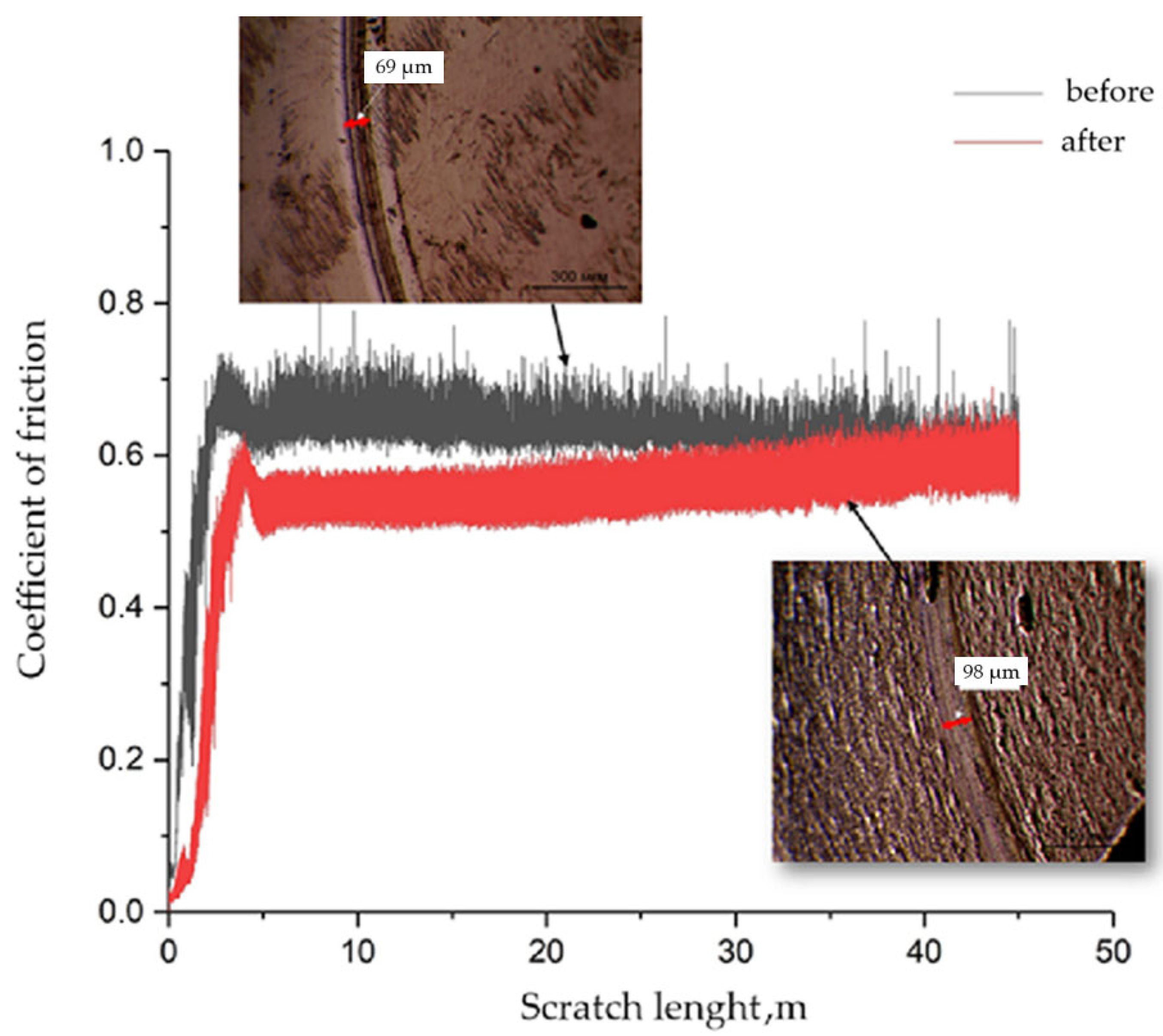 3.3. Analysis of Tribological Tests