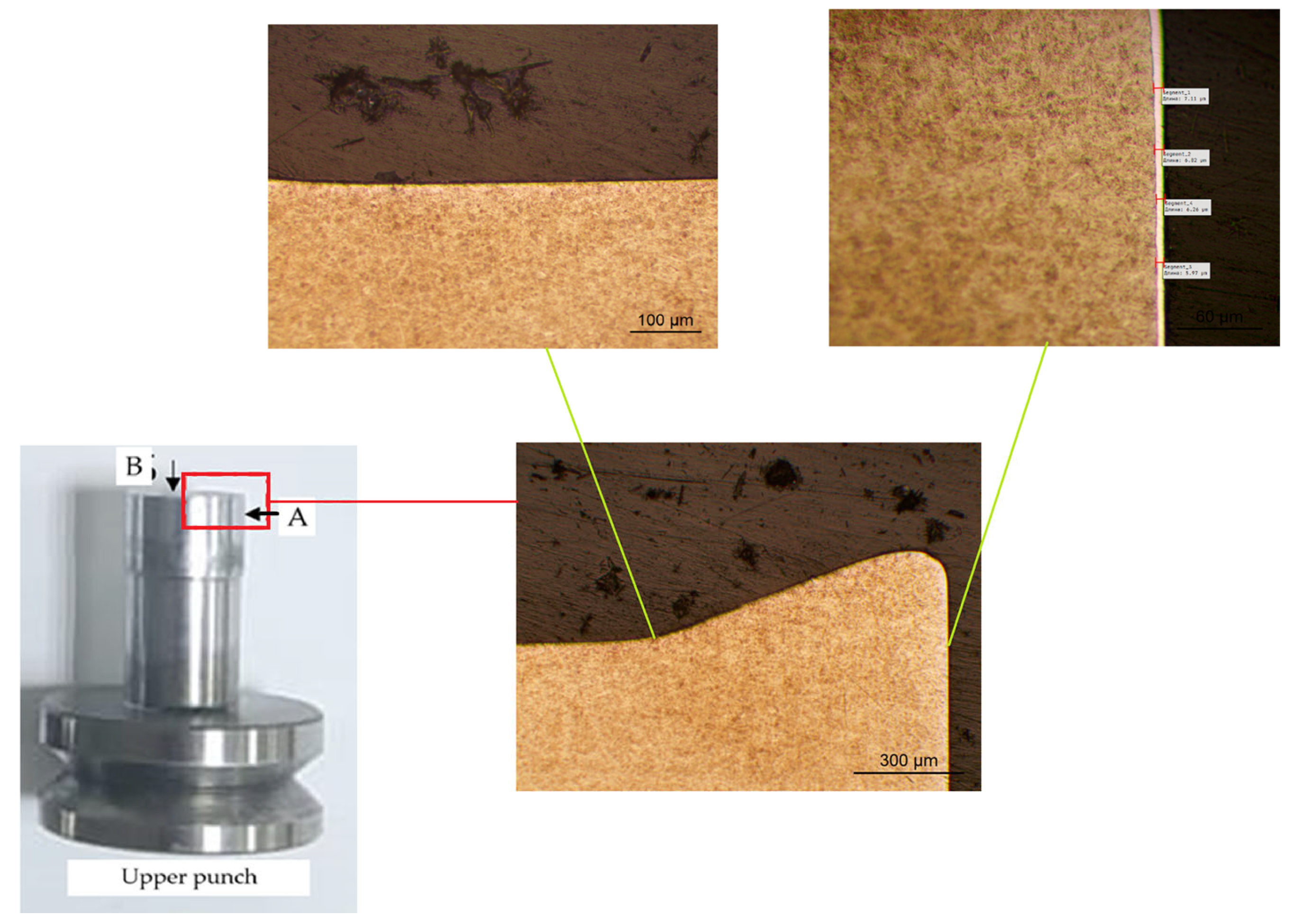 Punch before operation (side B) | Ra = 0.158 Rz = 0.914 Rt = 9.96 Rq = 0.243 Rv = 0.586 | |