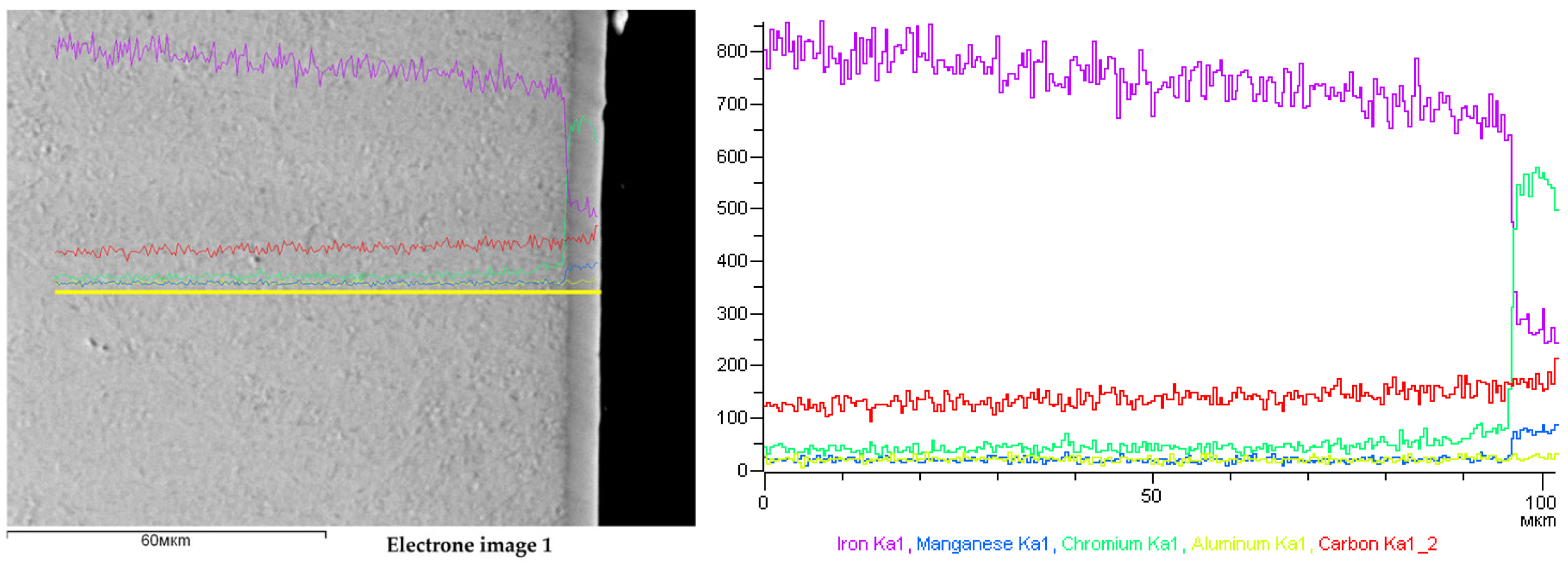 - Rakhadilov, B.; Kengesbekov, A.; Zhurerova, L.; Kozhanova, R.; Sagdoldina, Z. Impact of electronic radiation on the morphology of the fine structure of the surface layer of R6M5 steel. Machines 2021, 9, 24. [Google Scholar] [CrossRef]