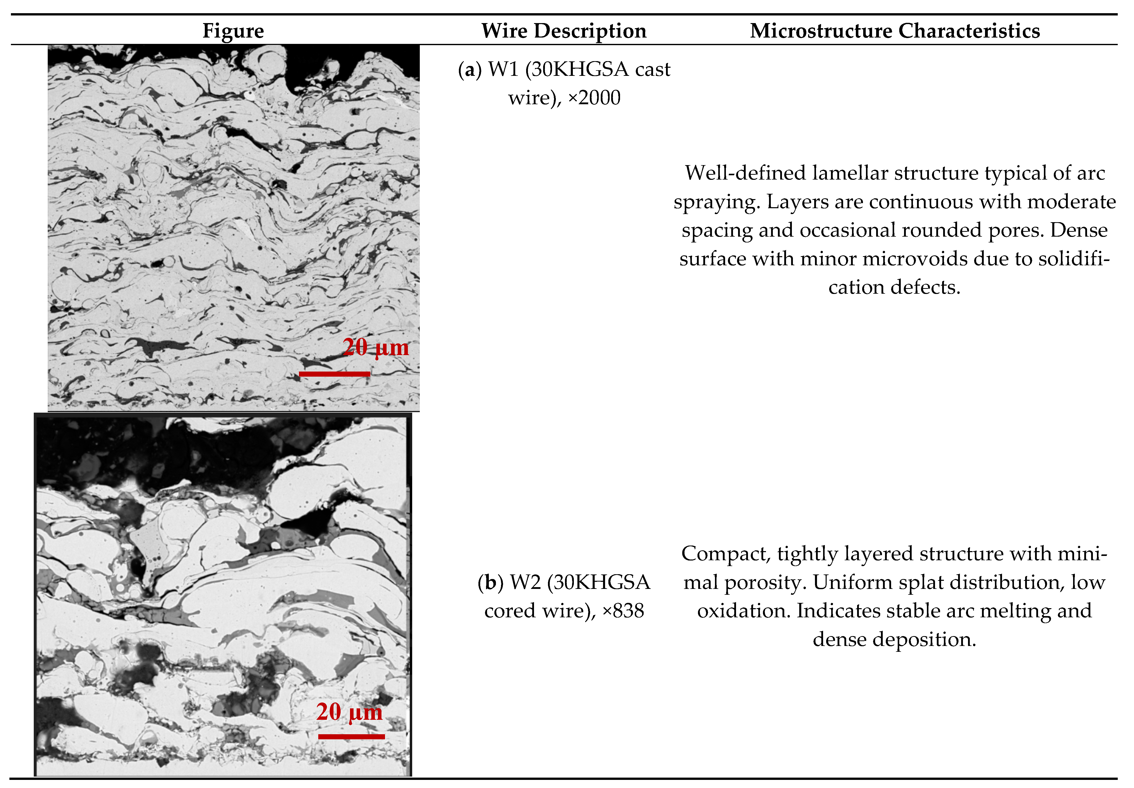 - Liao, X.J.; Zhang, L.; Sun, Y.Q.; Luo, X.T.; Li, C.X.; Yang, G.J.; Li, C.J. Effect of Inter-Splat Bonding Quality on the Wear Behavior of Plasma-Sprayed Stainless Steel Coating. J. Therm. Spray Technol. 2024, 33, 1559–1569. [Google Scholar] [CrossRef]