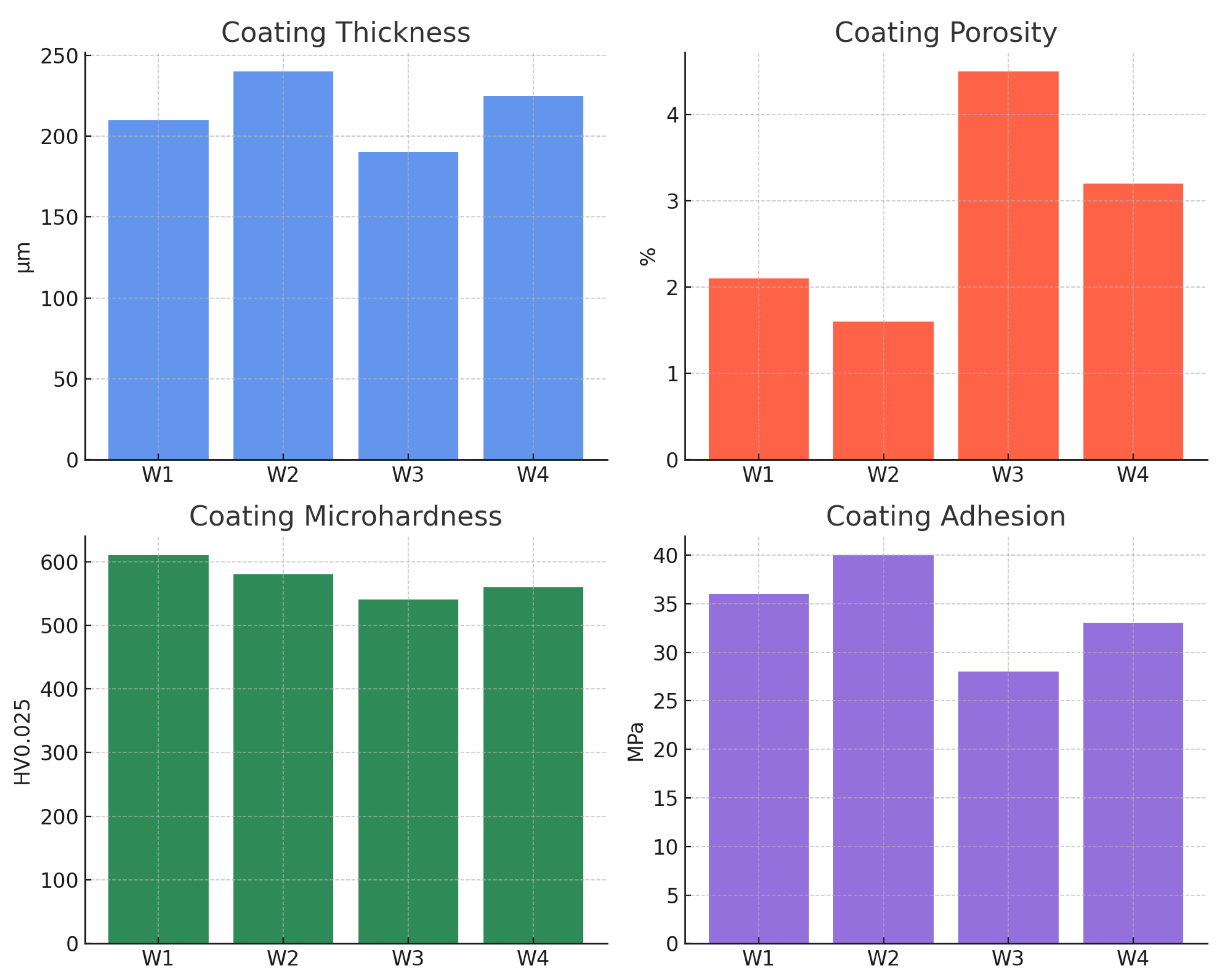 - According to EDS analysis, the observed differences in oxide and alloying element content correlated with the porosity of the coatings, suggesting the significant influence of oxidation processes on microstructure formation.