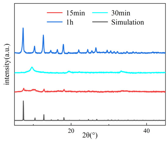 Comparison of PXRD patterns of ZIF-67 with different reaction duration.
