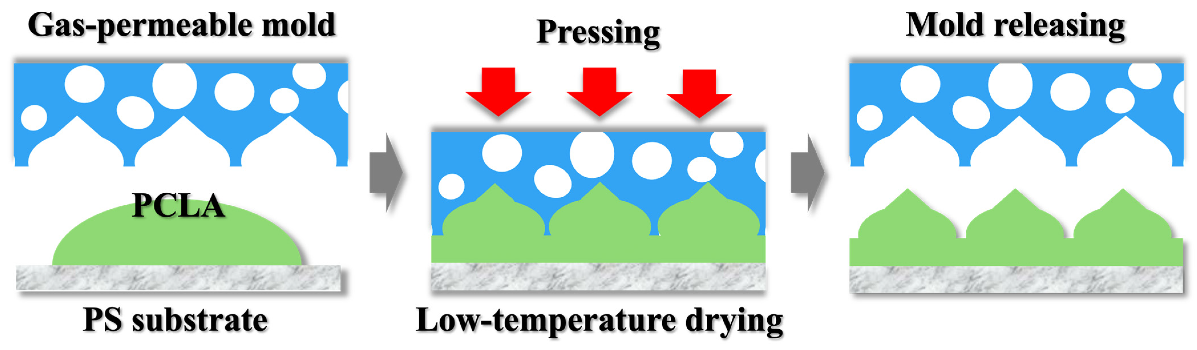 Chicago/Turabian StyleAndo, Mano, Naoto Sugino, Yoshiyuki Yokoyama, Nur Aliana Hidayah Mohamed, and Satoshi Takei. 2026. "Microstructured Coatings and Surface Functionalization of Poly(caprolactone-co-lactide) Using Gas-Permeable Mold" Coatings 16, no. 1: 10. https://doi.org/10.3390/coatings16010010