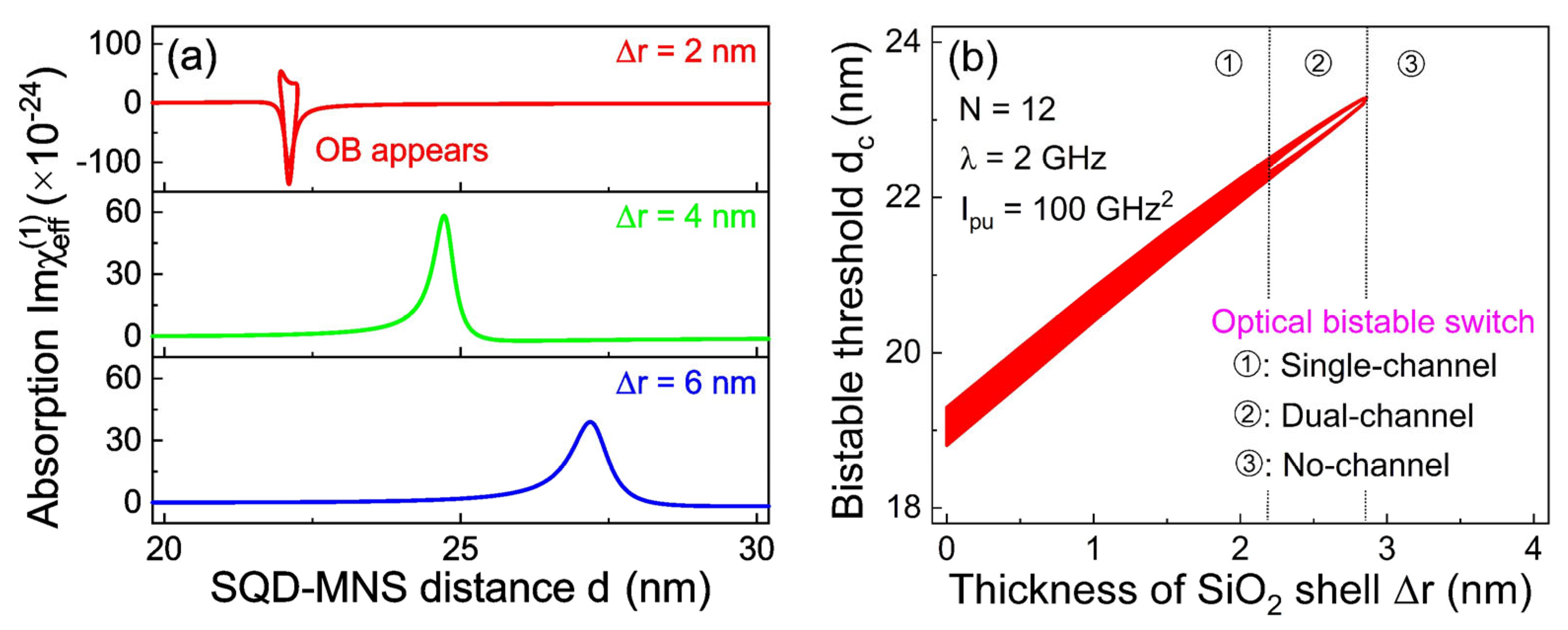 Inspecting Equation (9), it is evident that the bistable effect is strongly correlated with the dielectric shell thickness.