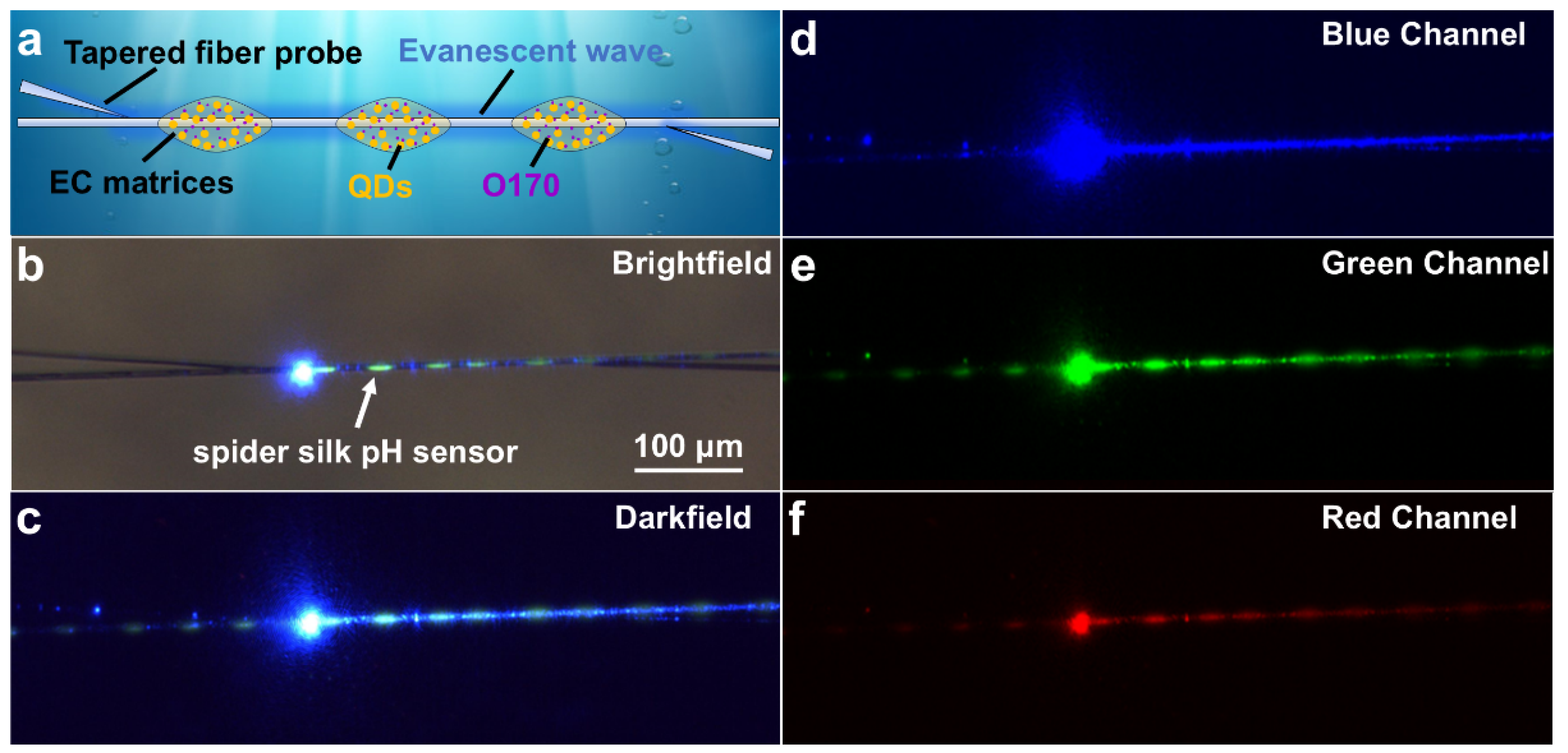 Chicago/Turabian StyleTang, Yangjie, Hao Zhang, Ran Xiao, Qixuan Wu, Jie Zhang, Chenchen Liu, Peng Yu, Guowei Yang, and Hongxiang Lei. 2026. "CdSe/ZnS QDs and O170 Dye-Decorated Spider Silk for pH Sensing" Coatings 16, no. 1: 110. https://doi.org/10.3390/coatings16010110