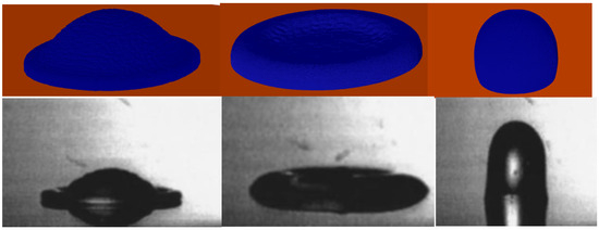 Figure 6 shows a 2.8 mm-diameter droplet impacting the wall at 1.56 m/s. Because the wall and droplet have the same temperature, no solidification occurs during impact. The simulation agrees well with the experimental data of Kim et al. [27].