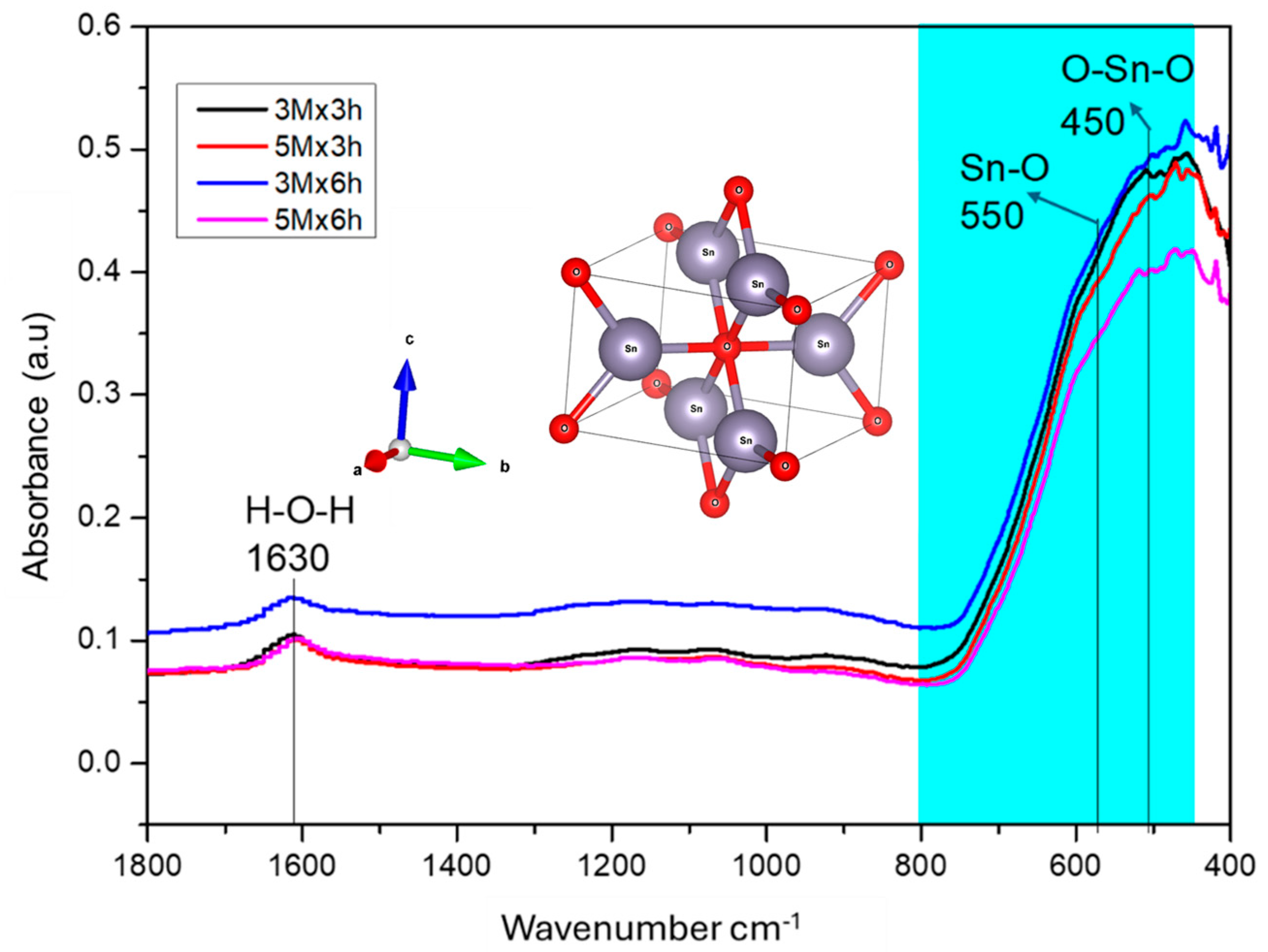 - Bargougui, R.; Omri, K.; Mhemdi, A.; Ammar, S. Synthesis and Characterization of SnO2 Nanoparticles: Effect of Hydrolysis Rate on the Optical Properties. Adv. Mater. Lett. 2015, 6, 816–819. [Google Scholar] [CrossRef]