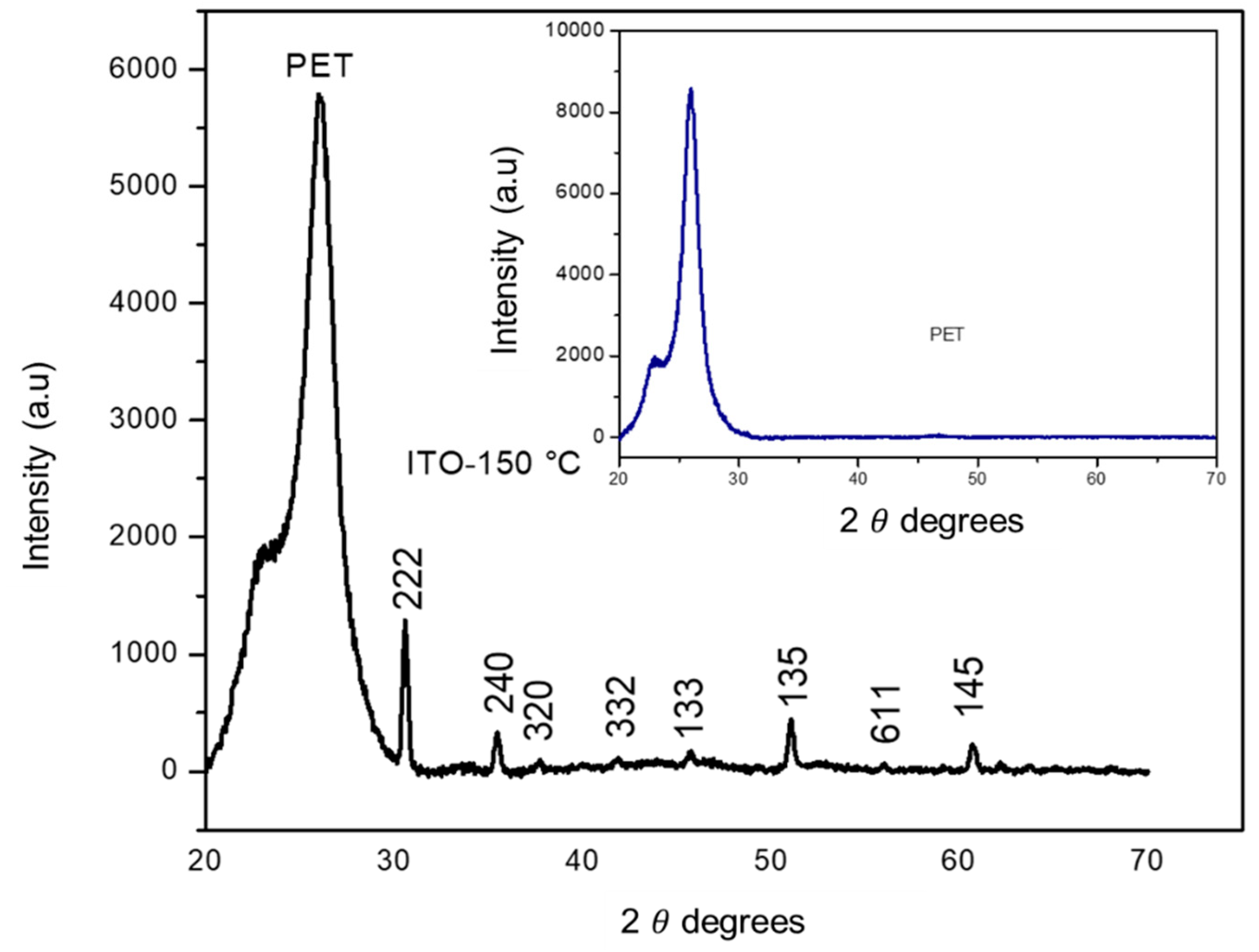 3.5. Structural Analysis of the ITO Film Deposited on PET Substrate