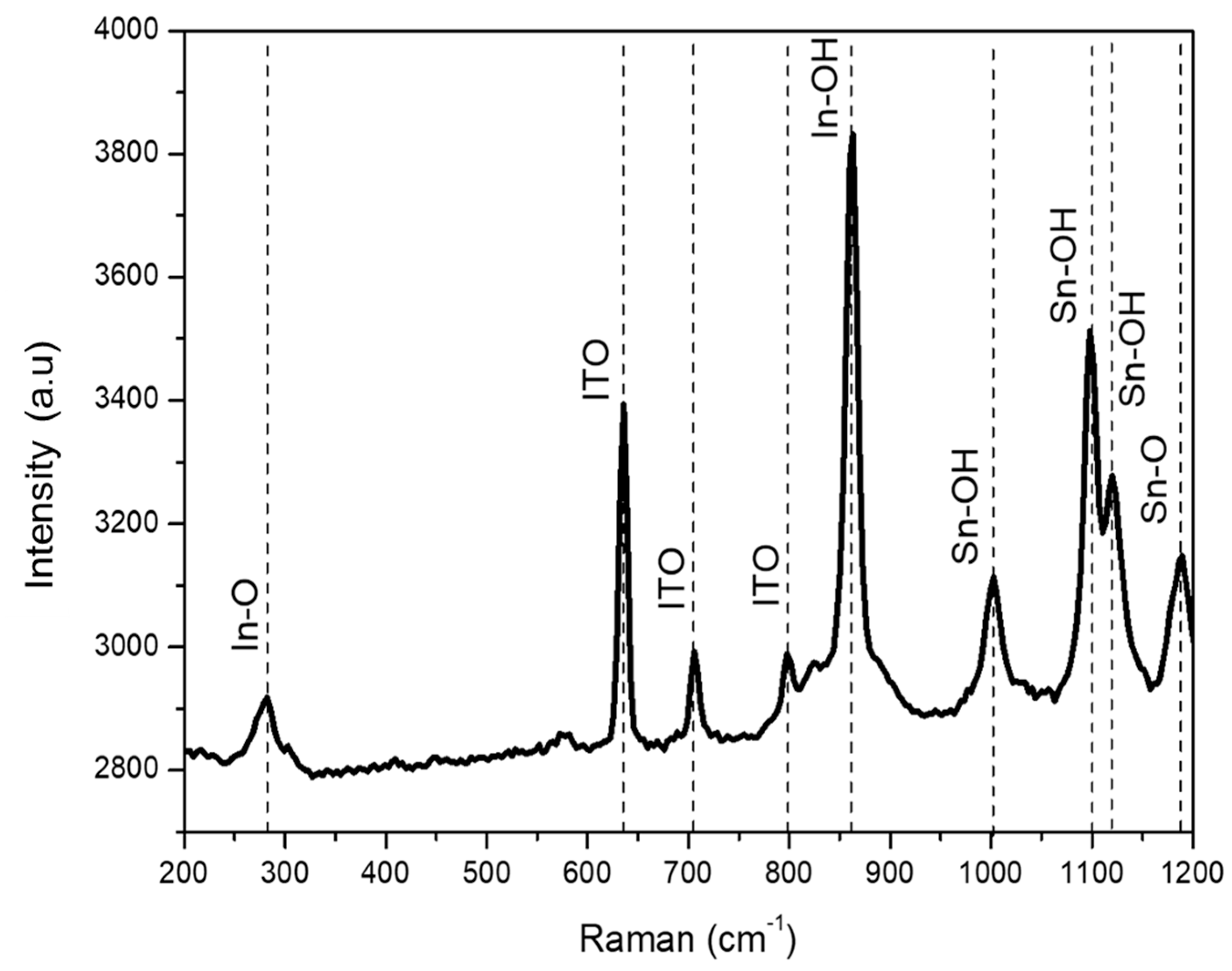 - Yousefi, M.; Rozati, S.M.; Najafi, N. Investigation of the Effect of Temperature on the Structural, Optical, Electrical, and Self-Cleaning Properties of ITO Thin Films. Appl. Phys. A Mater. Sci. Process. 2020, 126, 523. [Google Scholar] [CrossRef]