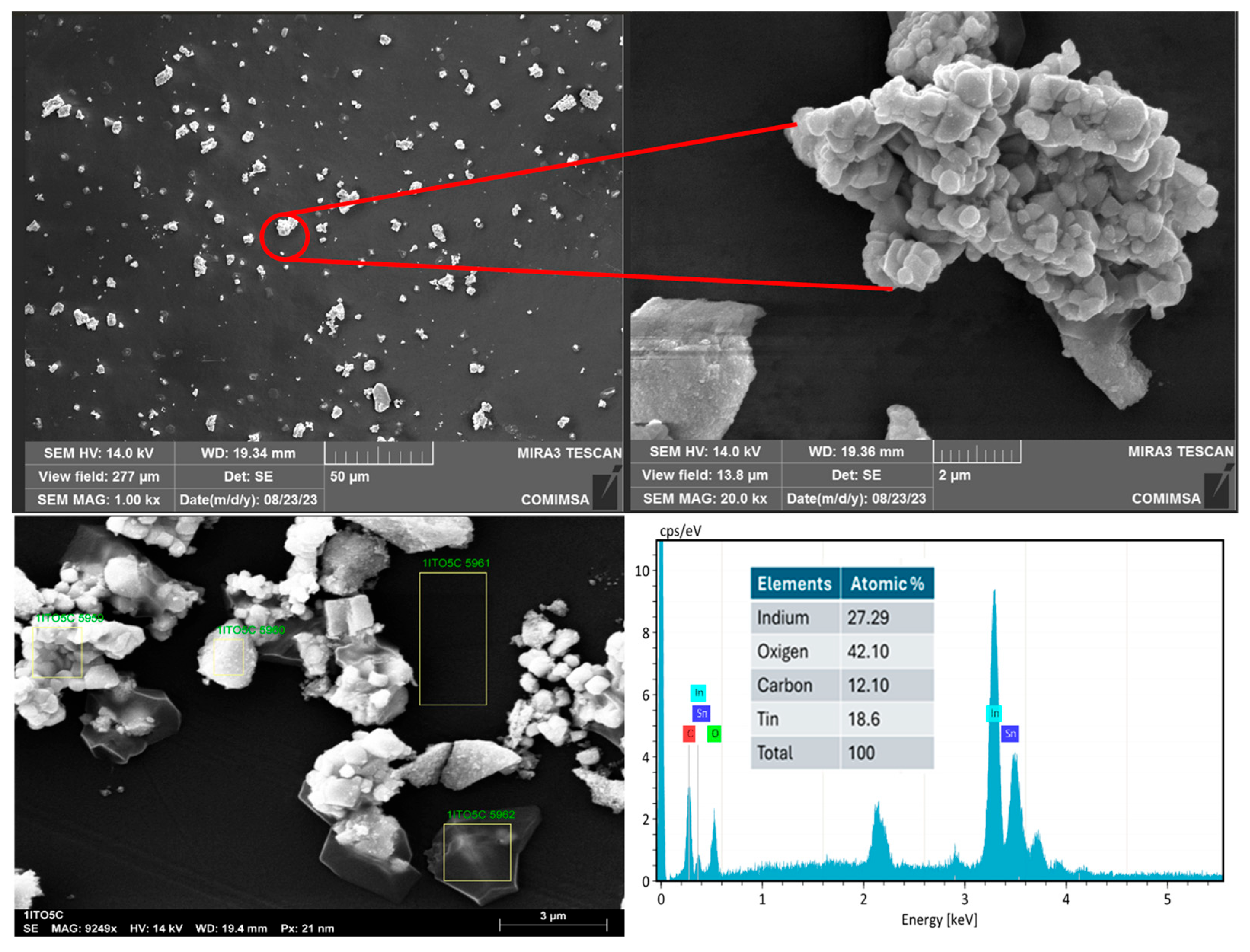 Chicago/Turabian StyleMadrigal-Diaz, Silvia del Carmen, Laura Cristel Rodríguez-López, Isaura Victoria Fernández-Orozco, Saúl García-López, Cecilia del Carmen Díaz-Reyes, Claudio Martínez-Pacheco, José Luis Cervantes-López, Ibis Ricárdez-Vargas, and Laura Lorena Díaz-Flores. 2026. "Synthesis and Characterization of ITO Films via Forced Hydrolysis for Surface Functionalization of PET Sheets" Coatings 16, no. 1: 120. https://doi.org/10.3390/coatings16010120