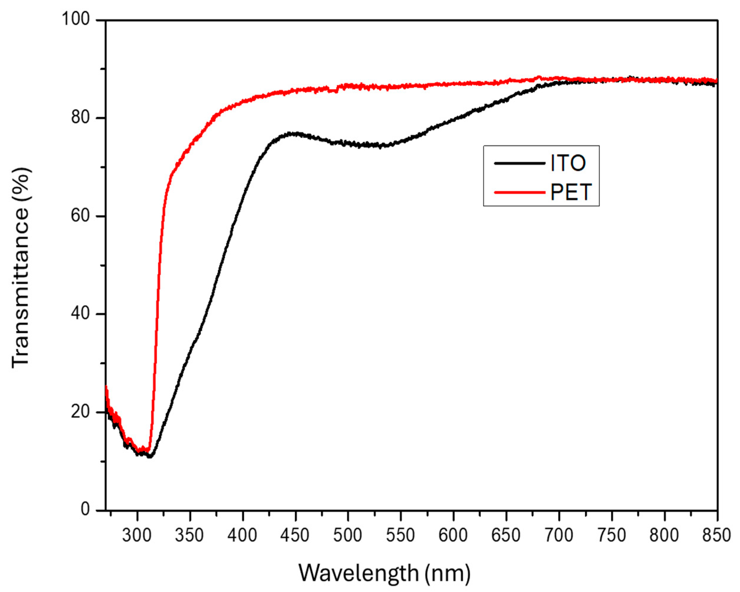 3.6. Surface Analysis of the ITO/PET Film Quality