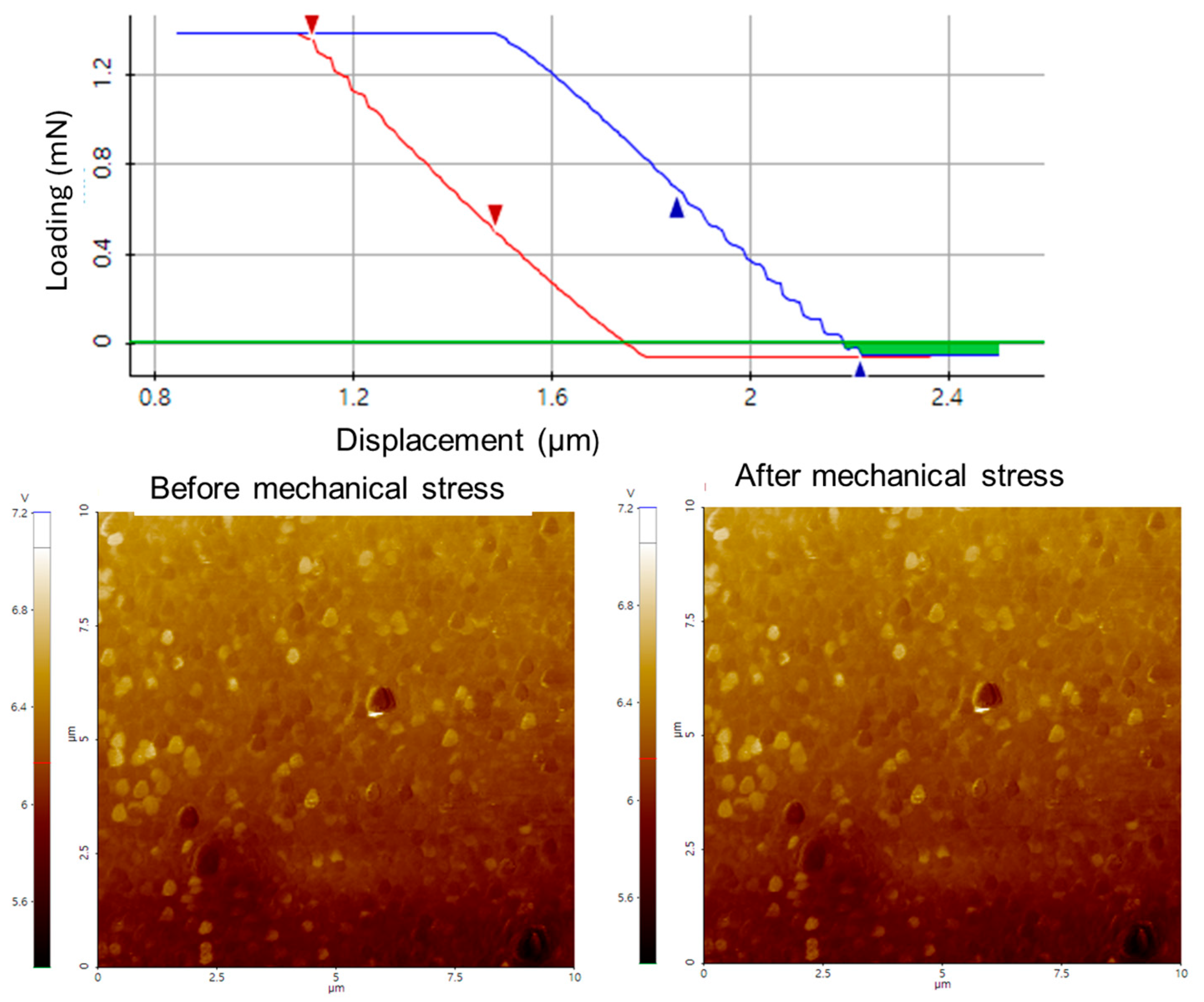 - Roa, S.; Sirena, M. AFM Imaging Analysis of Nanoindentation-Induced Plastic Strain in Indium Surface for Calibrating Nanoindenters Area Profiles. Phys. B Condens Matter 2022, 633, 413773. [Google Scholar] [CrossRef]