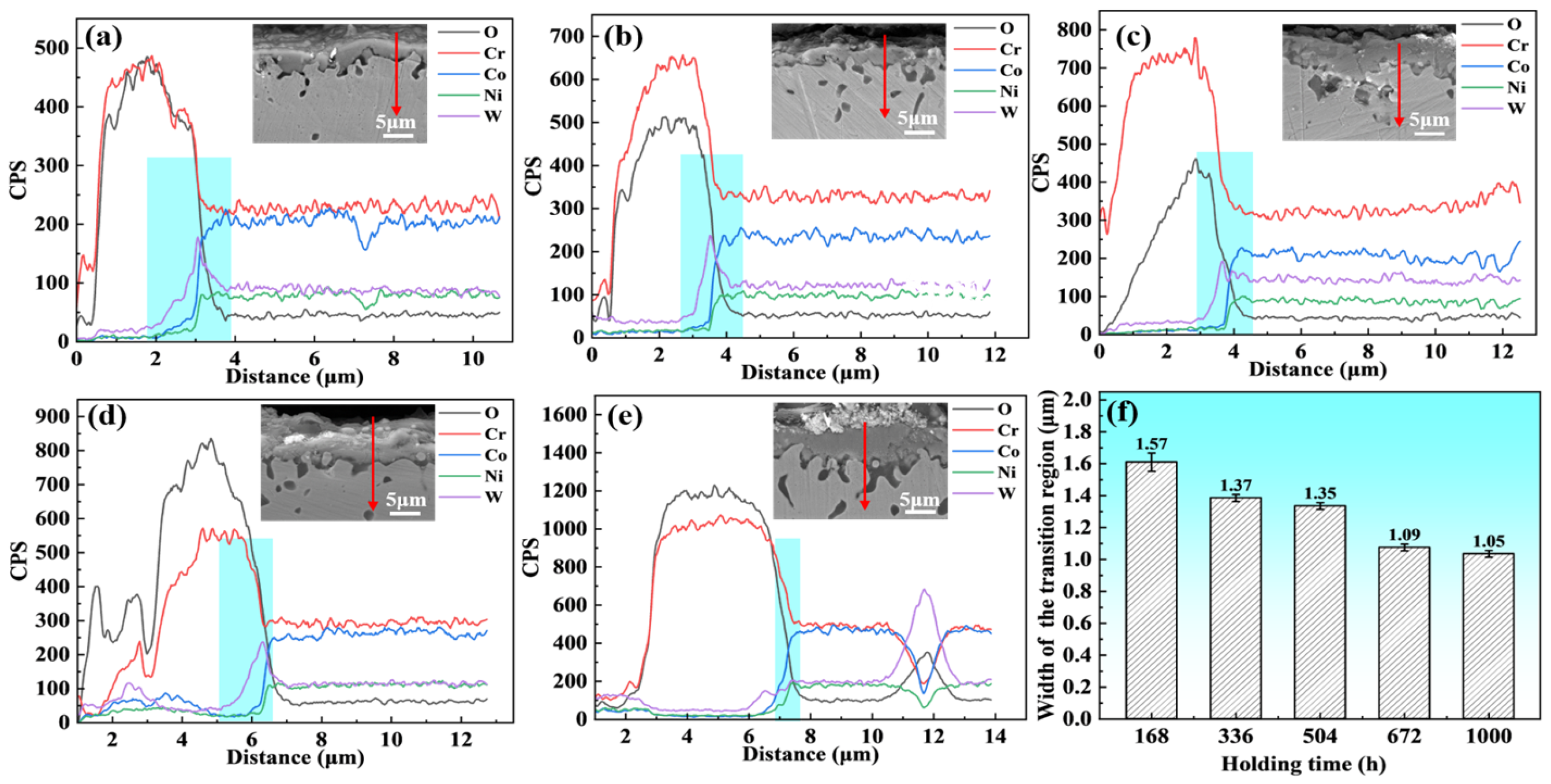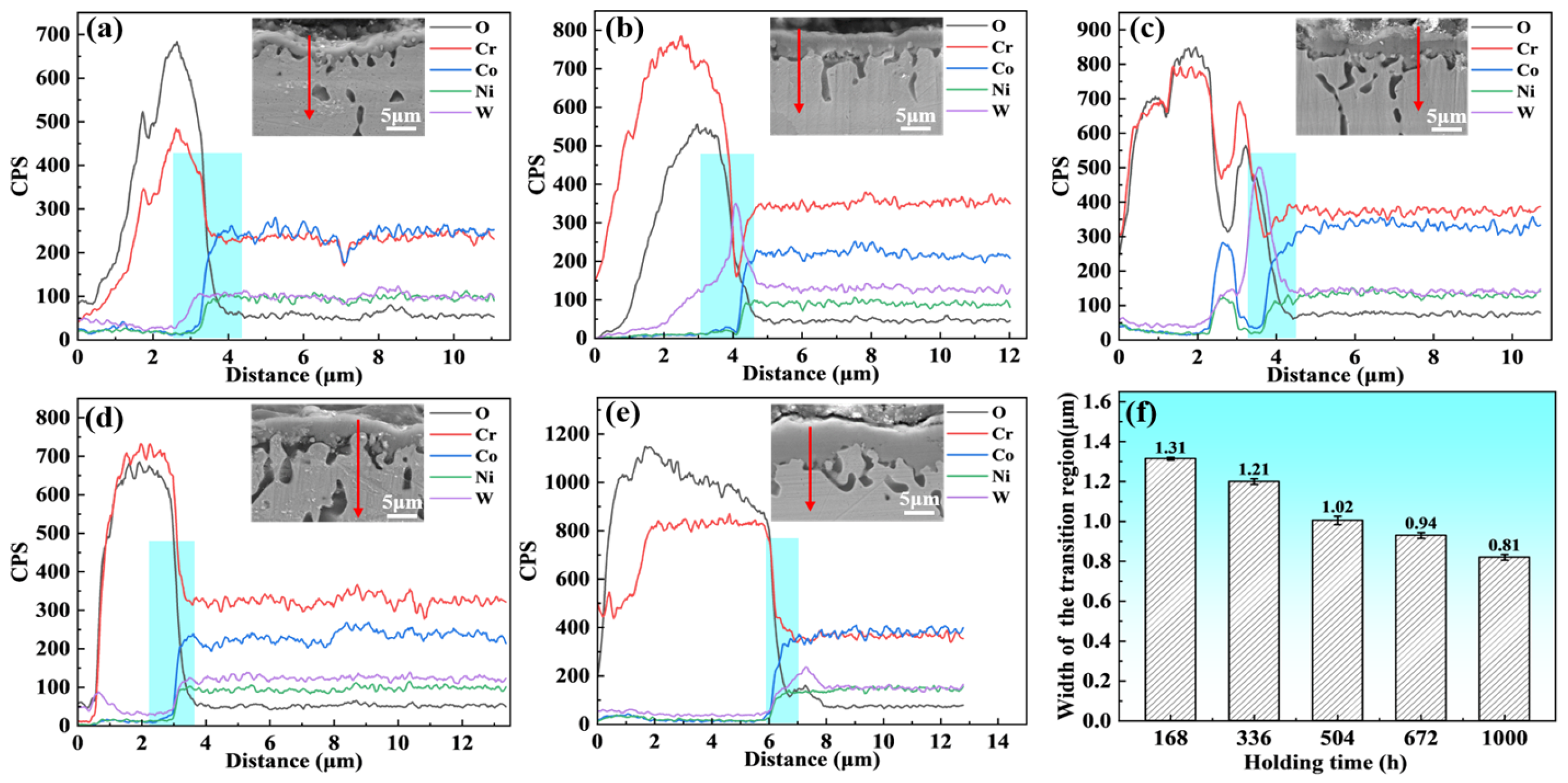 - The width of the transition region decreased with the heating duration and was smaller on the external surface. This led to a deeper compositional gradient between the oxide film and the inner metal, which in turn facilitated the removal of the oxide during cleaning.