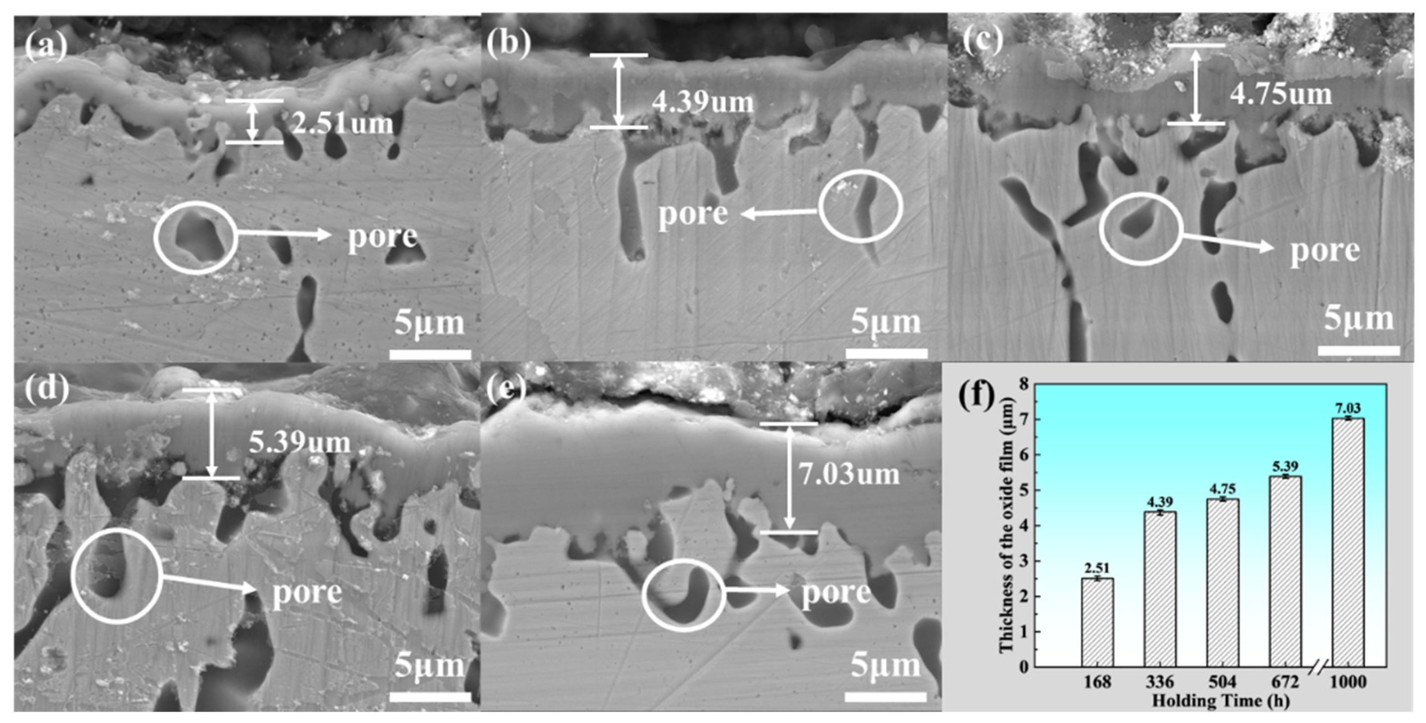 - The growth rate of the oxide film on the external surface is slightly larger than that in the narrow crevice, which slowed down after 672 h because of the space-confined geometry and the lower oxygen partial pressure.