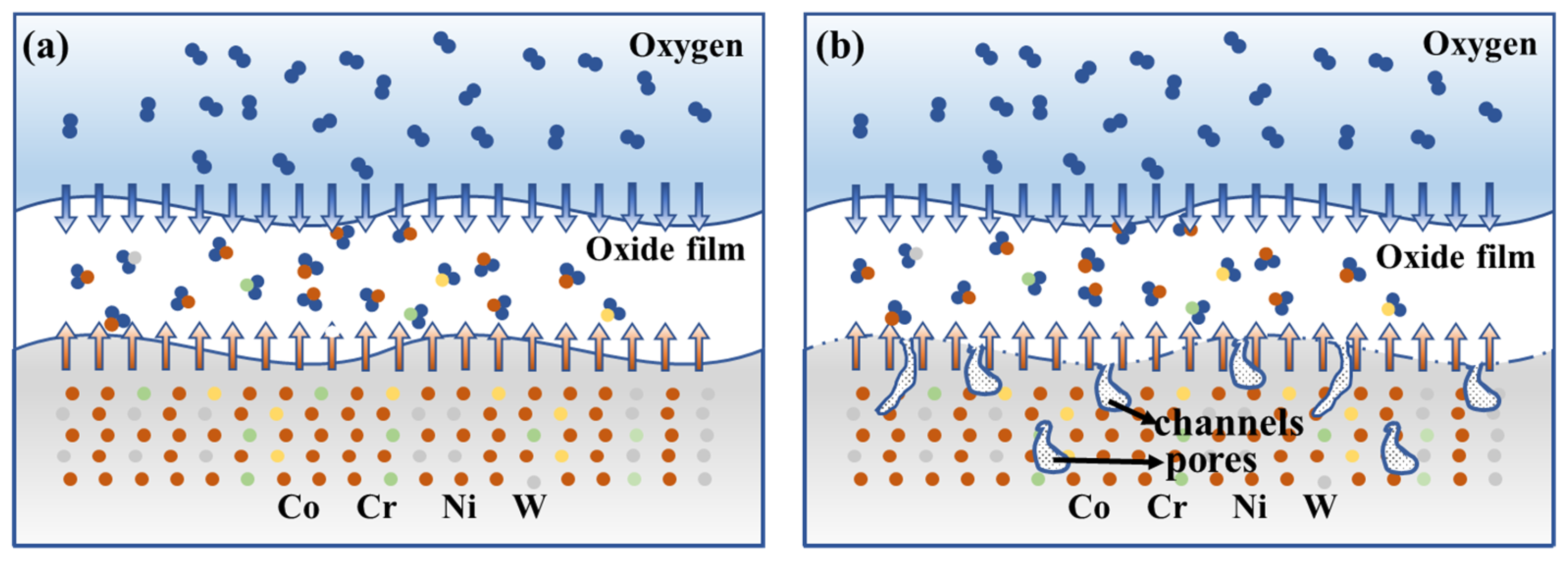 - Liu, P.S.; Liang, K.M. High-Temperature Oxidation Behavior of the Co-Base Superalloy DZ40M in Air. Oxid. Met. 2000, 53, 351–360. [Google Scholar] [CrossRef]