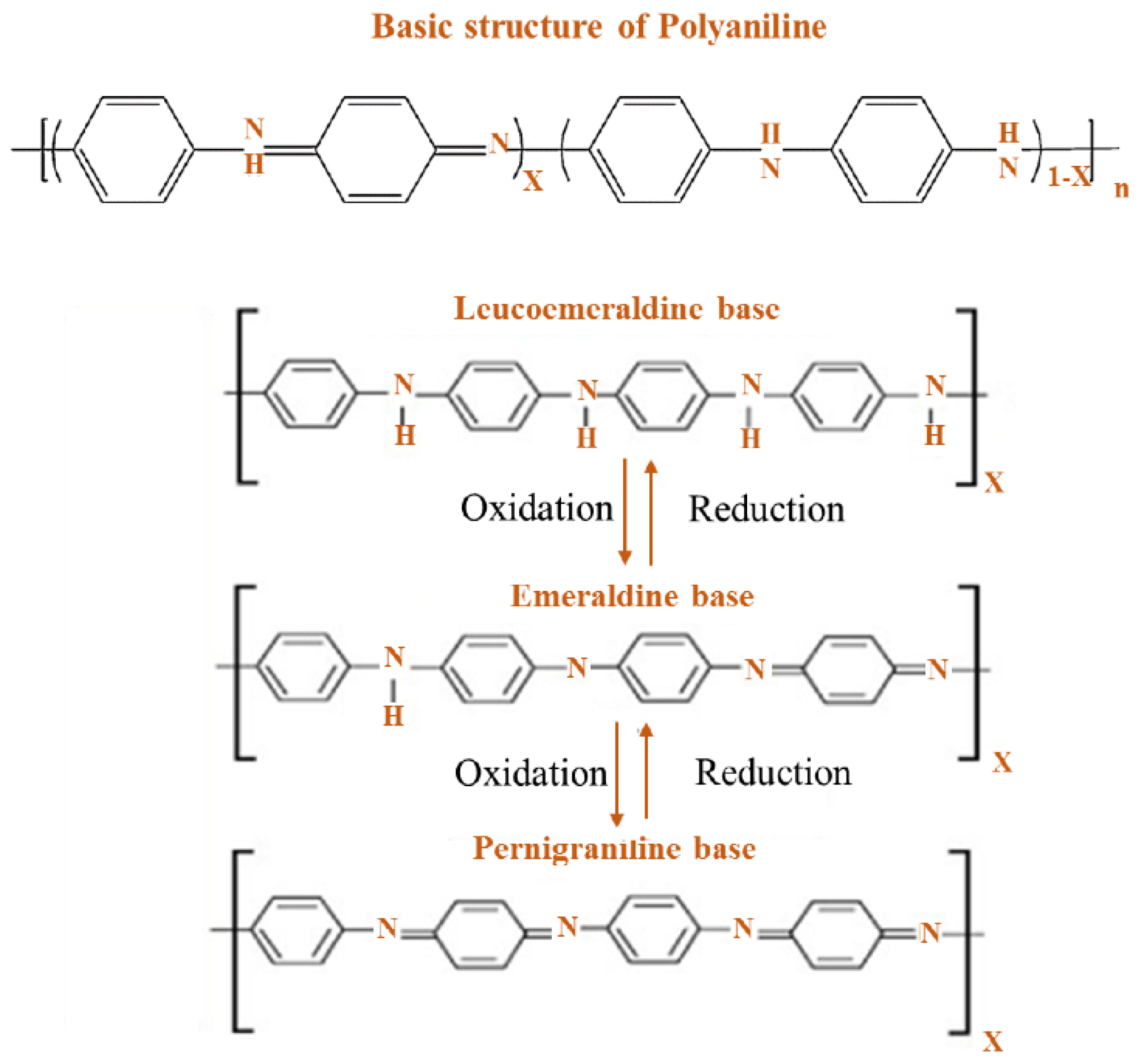 - Bláha, M.; Trchová, M.; Bober, P.; Morávková, Z.; Prokeš, J.; Stejskal, J. Polyaniline: Aniline oxidation with strong and weak oxidants under various acidity. Mater. Chem. Phys. 2017, 194, 206–218. [Google Scholar] [CrossRef]