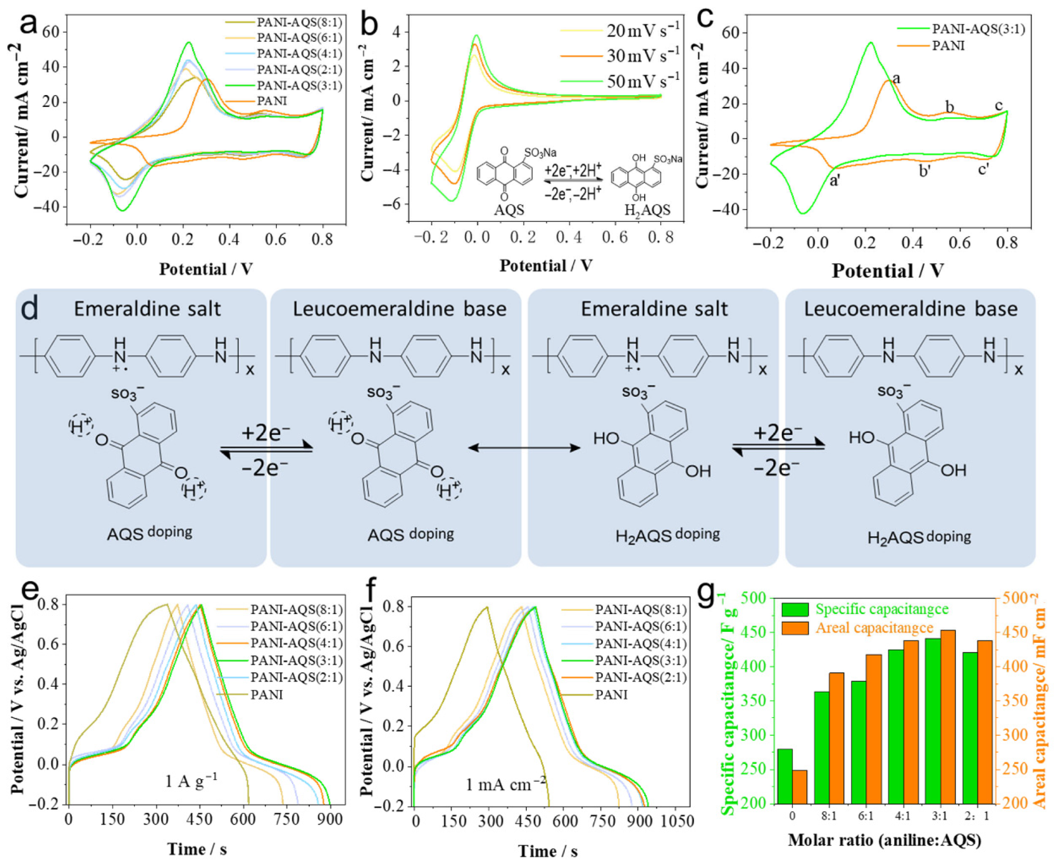- Zhang, P.; Zhai, X.; Huang, H.; Zhou, J.; Li, X.; He, Y.; Guo, Z. Capacitance fading mechanism and structural evolution of conductive polyaniline in electrochemical supercapacitor. J. Mater. Sci. Mater. Electron. 2020, 31, 14625–14634. [Google Scholar] [CrossRef]