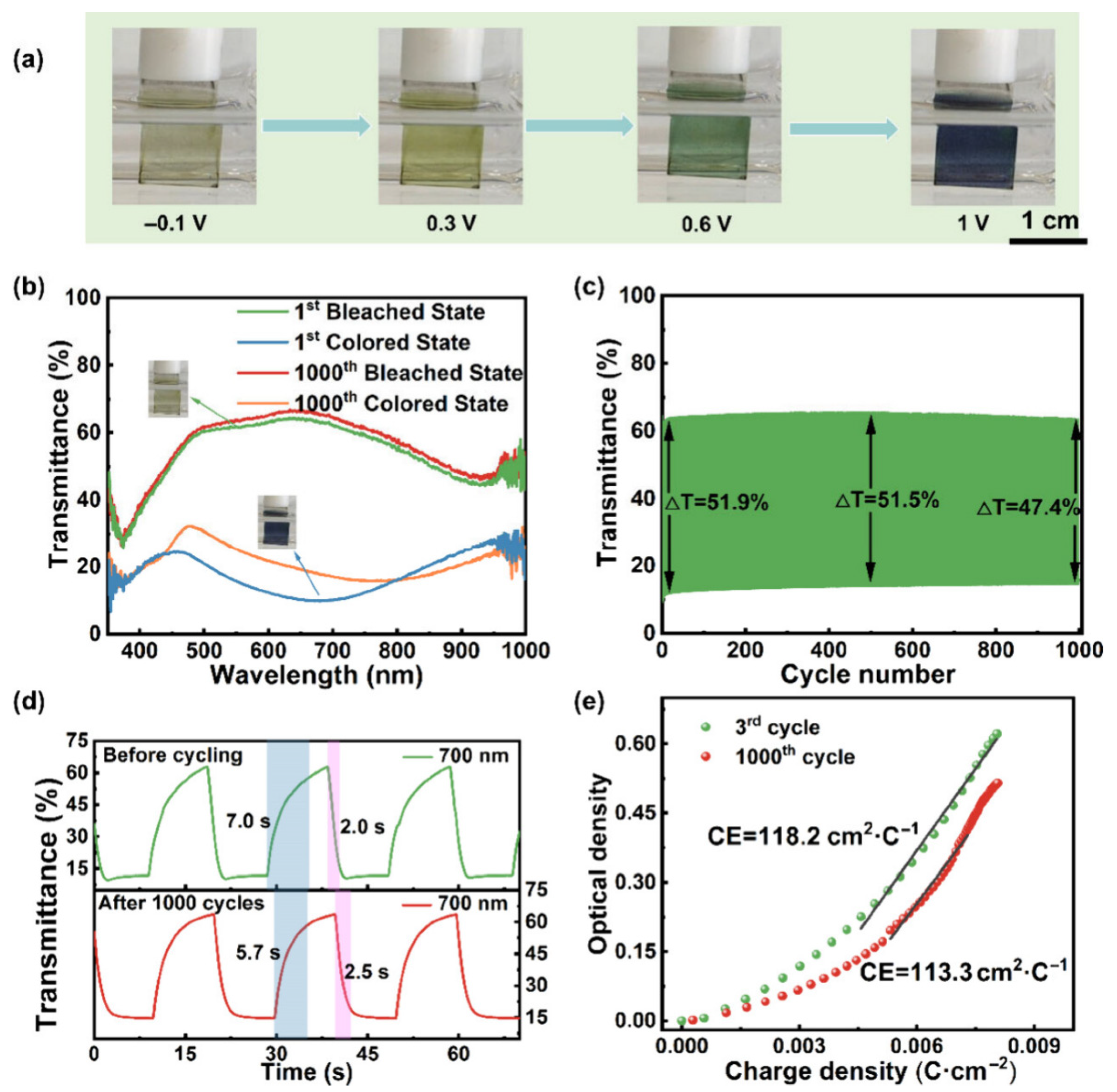 - Gong, H.; Li, A.; Fu, G.; Zhang, M.; Zheng, Z.; Zhang, Q.; Zhou, K.; Liu, J.; Wang, H. Ultrathin flexible electrochromic devices enabled by highly transparent ion-conducting films. J. Mater. Chem. A 2023, 11, 8939–8949. [Google Scholar] [CrossRef]