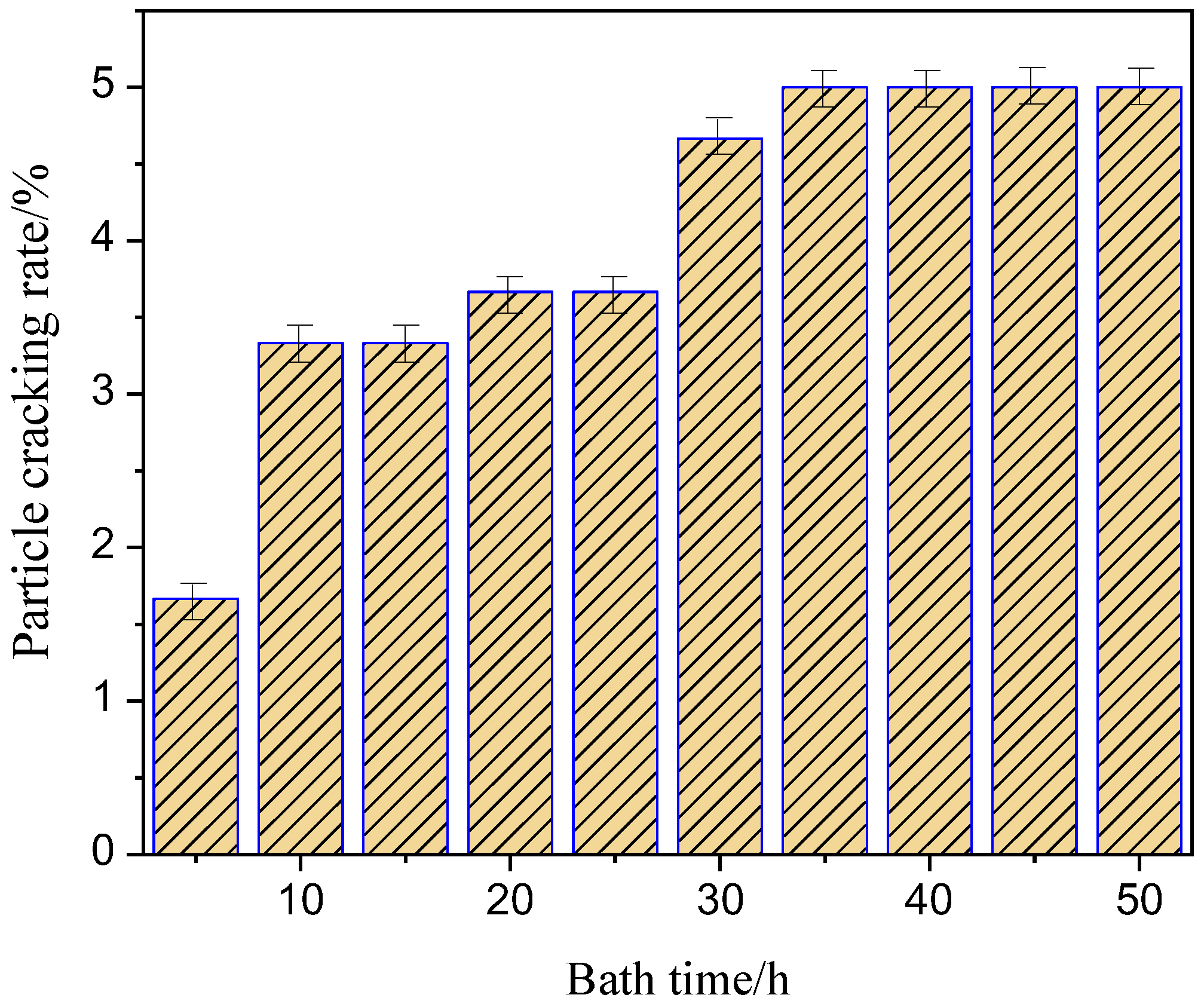 Figure 13 show the increasing trend of cracking of steel slag aggregates during the water bath process, with a final cracking rate of 5%. As shown in