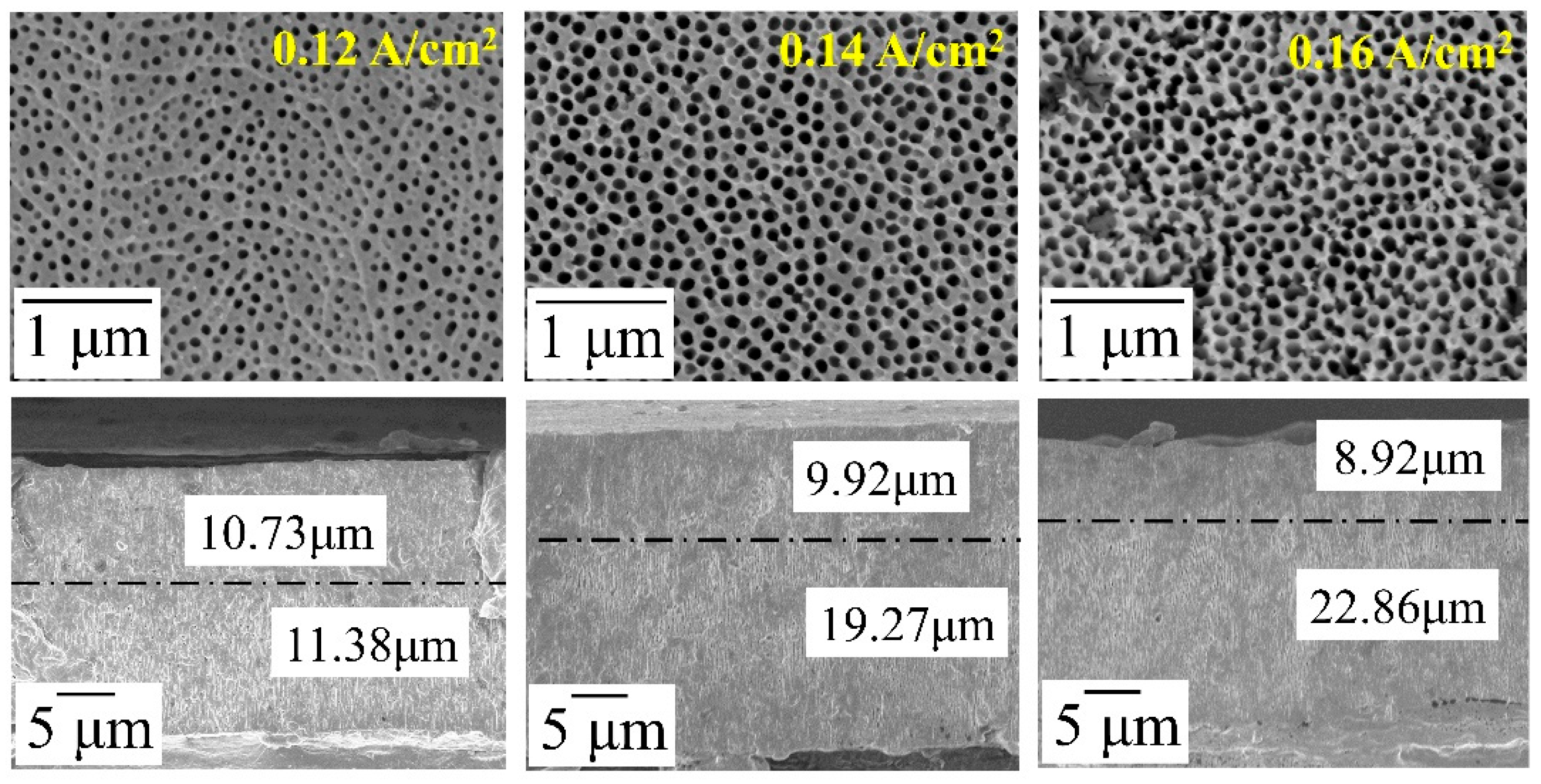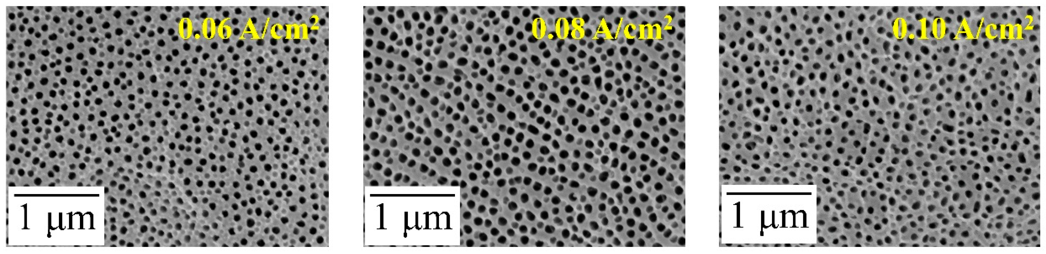 3.1. Influence of Current Density Parameters in Two-Step Anodic Oxidation
