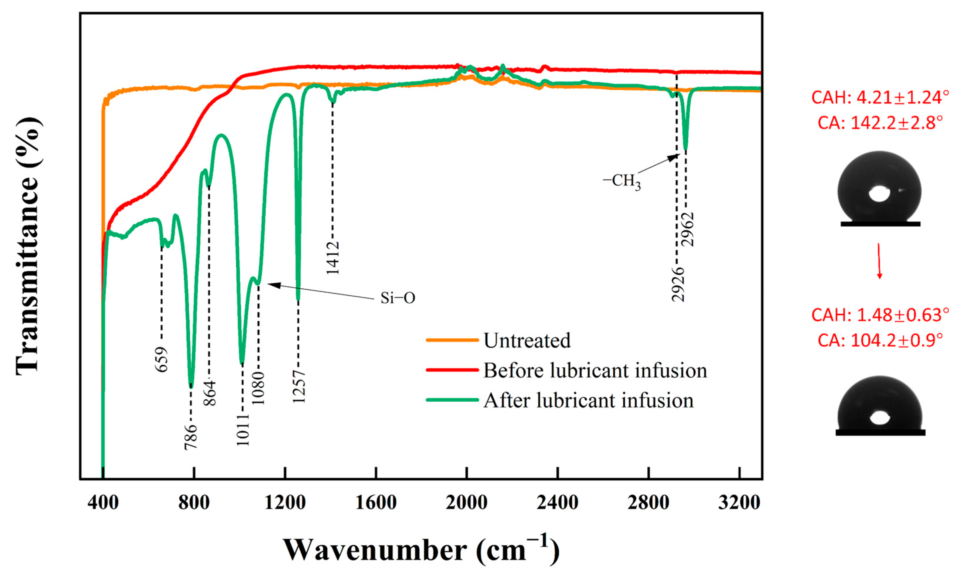 - Sasidharanpillai, A.; Lee, Y.; Lee, S. Design of Stable Liquid Infused Surfaces: Influence of Oil Viscosity on Stability. Colloids Surf. A Physicochem. Eng. Asp. 2022, 646, 128923. [Google Scholar] [CrossRef]