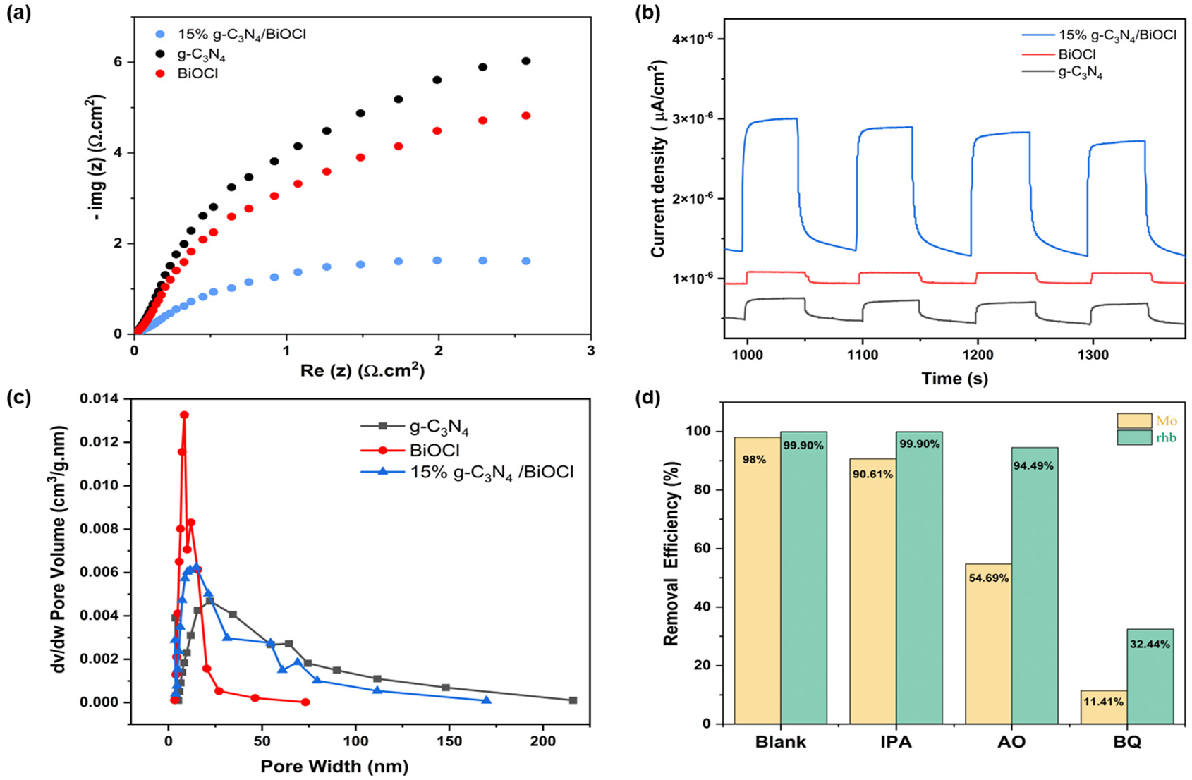 Chicago/Turabian StyleAbanchime Zenaba, Hadja Kaka, Mi Long, Xue Liu, Mengying Xu, Wen Luo, and Tian Zhang. 2026. "Electrochemical and Optical Insights into Interfacial Connection for Fast Pollutant Removal: Experimental Study of g-C3N4/BiOCl Heterojunction for Rhb and MO Photodegradation" Coatings 16, no. 1: 138. https://doi.org/10.3390/coatings16010138