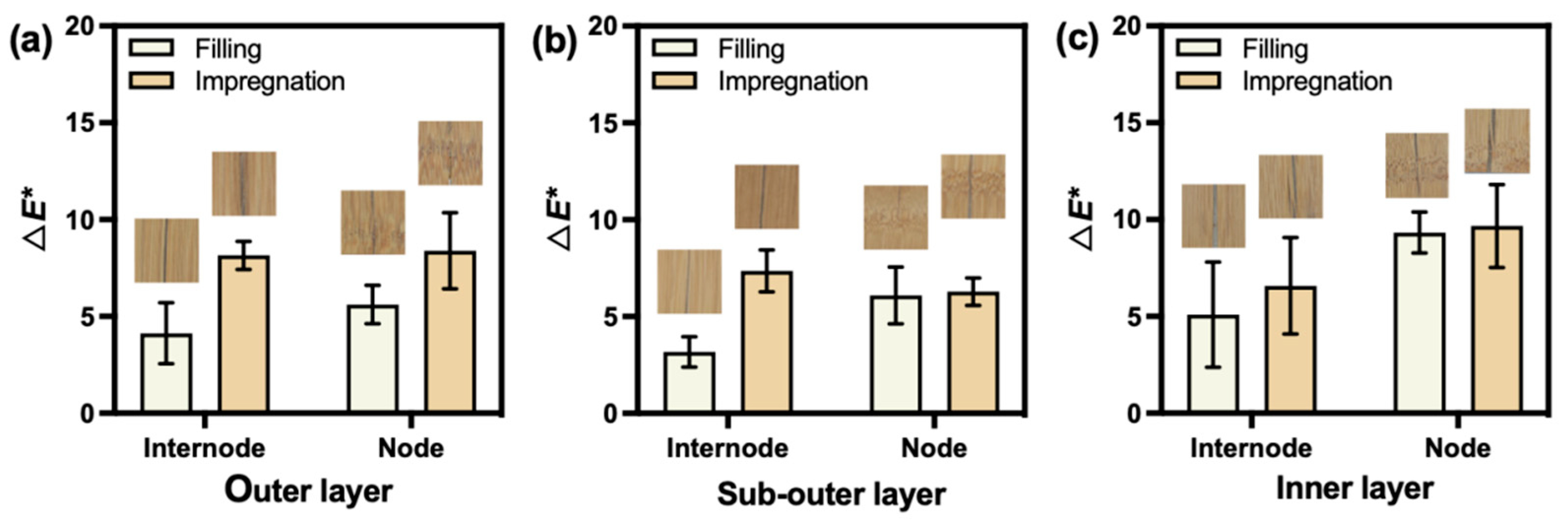 - Chen, L.; Lian, C.; Chen, M.; Wu, Z. Effects of Microstructure and Chemical Composition on the Visual Characteristics of Flattened Bamboo Board. Forests 2023, 14, 2220. [Google Scholar] [CrossRef]