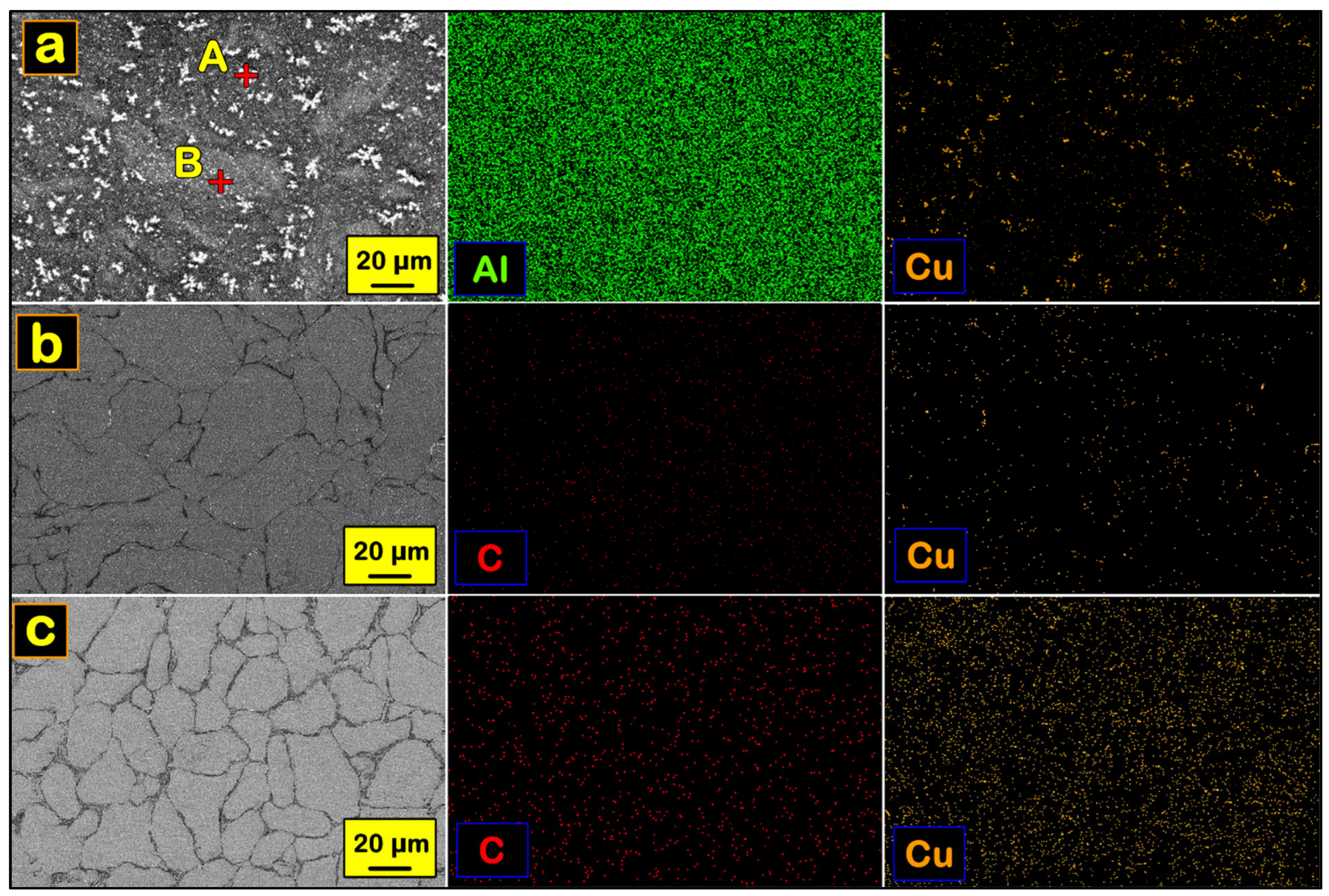 - Wąsik, A.; Leszczyńska-Madej, B.; Madej, M.; Goły, M. Effect of Heat Treatment on Microstructure of Al4Cu-SiC Composites Consolidated by Powder Metallurgy Technique. J. Mater. Eng. Perform. 2020, 29, 1841–1848. [Google Scholar] [CrossRef]