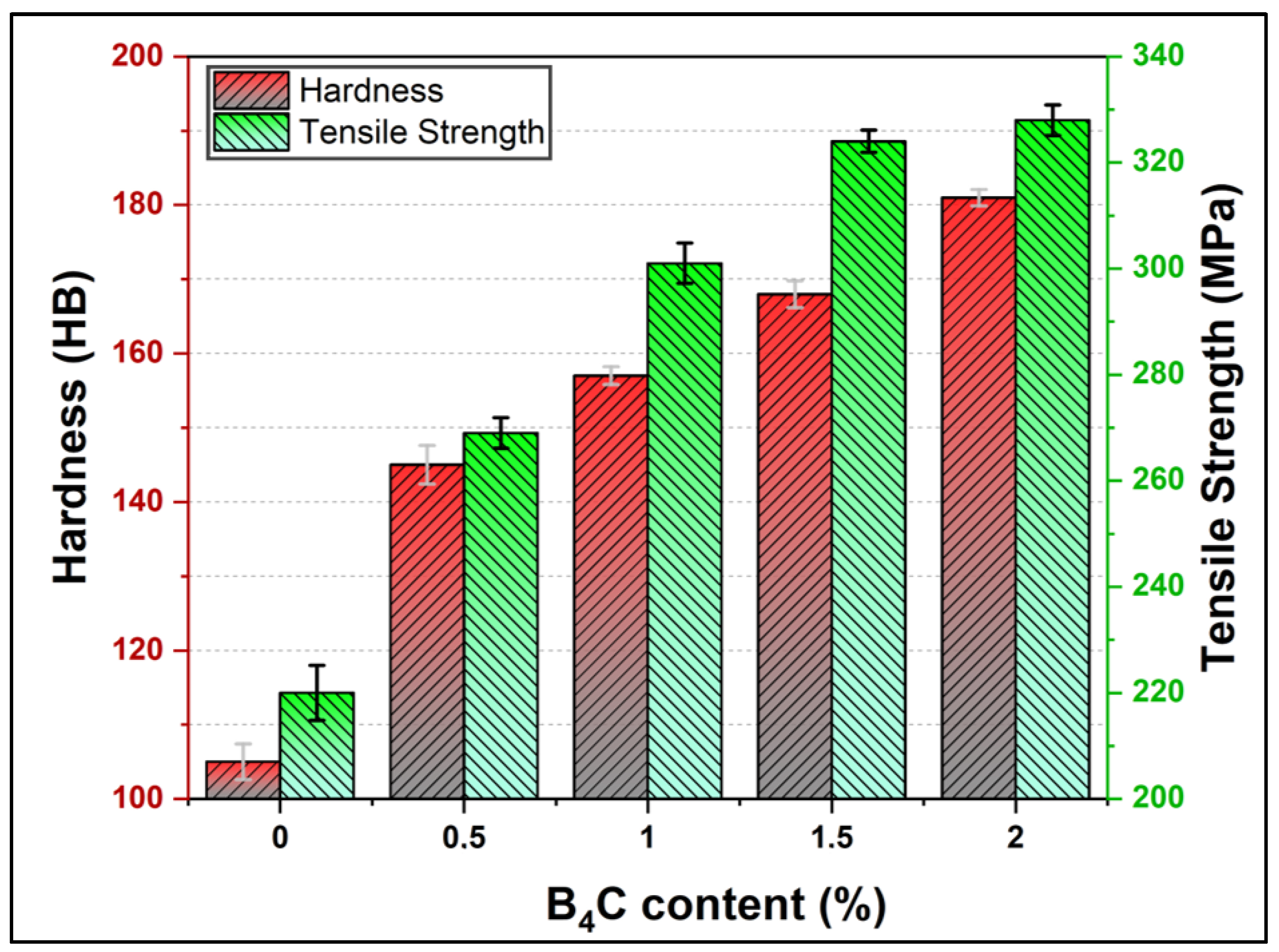 - Wu, J.; Li, Z.; Luo, Y.; Gao, Z.; Li, Y.; Zhao, Y.; Liao, Y.; Wu, C.; Jin, M. Influence of Synergistic Strengthening Effect of B4C and TiC on Tribological Behavior of Copper-Based Powder Metallurgy. Ceram. Int. 2023, 49, 2978–2990. [Google Scholar] [CrossRef]