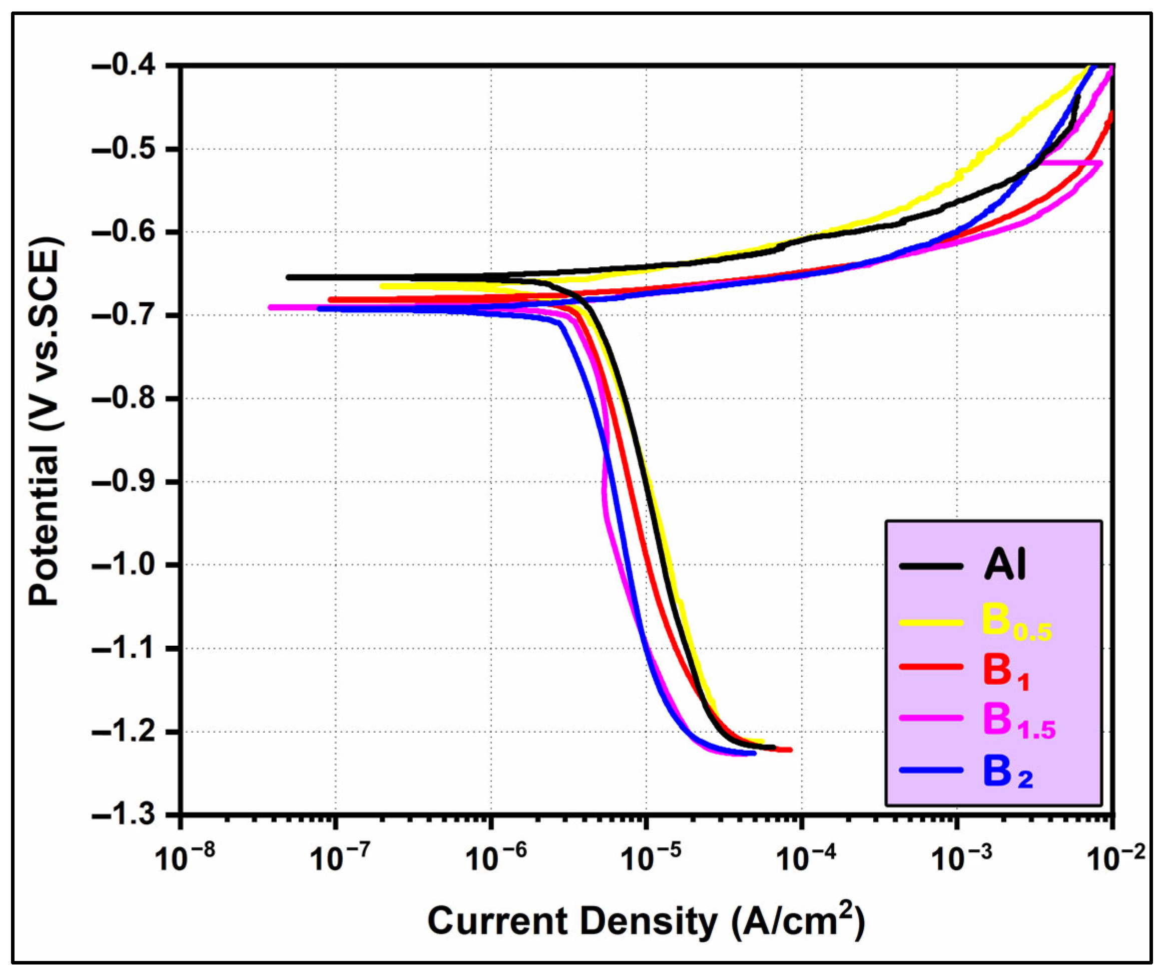 - Han, H.; Jiang, L.; Chao, Z.; Xue, W.; Zhu, M.; Han, B.; Zhang, R.; Du, S.; Luo, T.; Mei, Y. Revealing Corrosion Behavior of B4C/Pure Al Composite at Different Interfaces between B4C Particles and Al Matrix in NaCl Electrolyte. J. Mater. Res. Technol. 2023, 27, 7213–7227. [Google Scholar] [CrossRef]