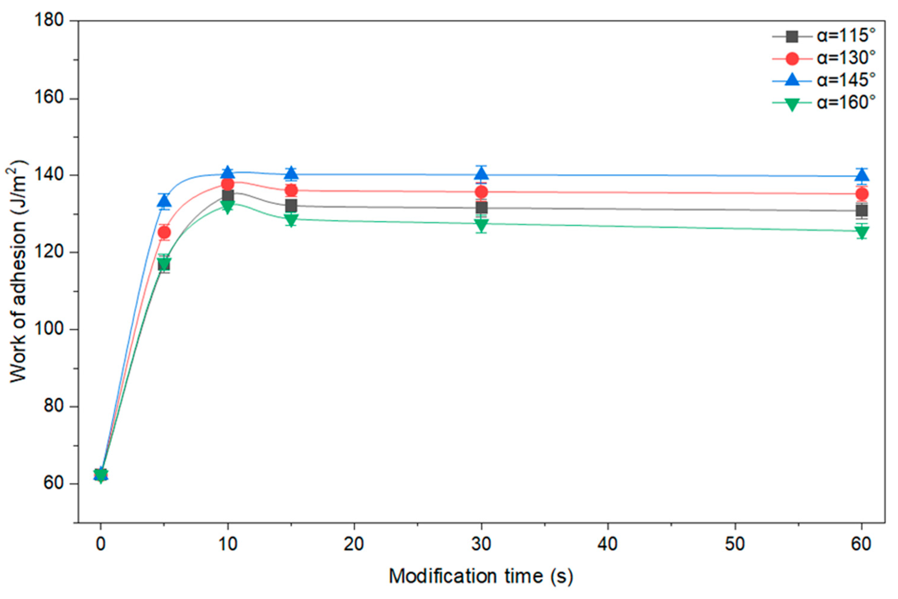 73]. The current research has potential applications in addressing the peeling of waterproofing from a steel pipeline, thereby increasing its durability. Additionally, the GAP method is an environmentally friendly and resource-efficient alternative to chemical modification.