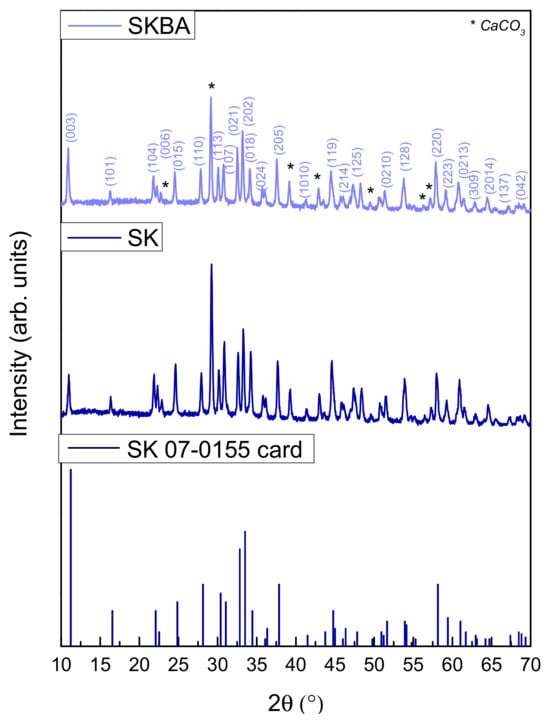 X-ray diffraction patterns of the SK and SKBA coatings.