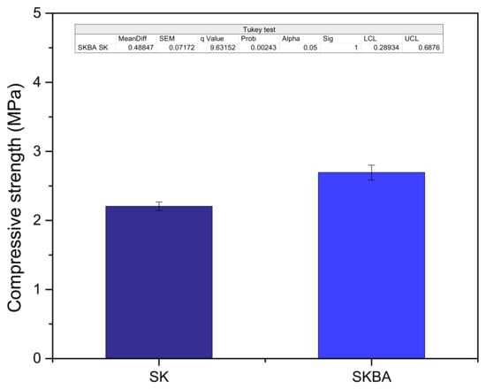 Comparison of the compressive strength values of the SK and SKBA coatings.