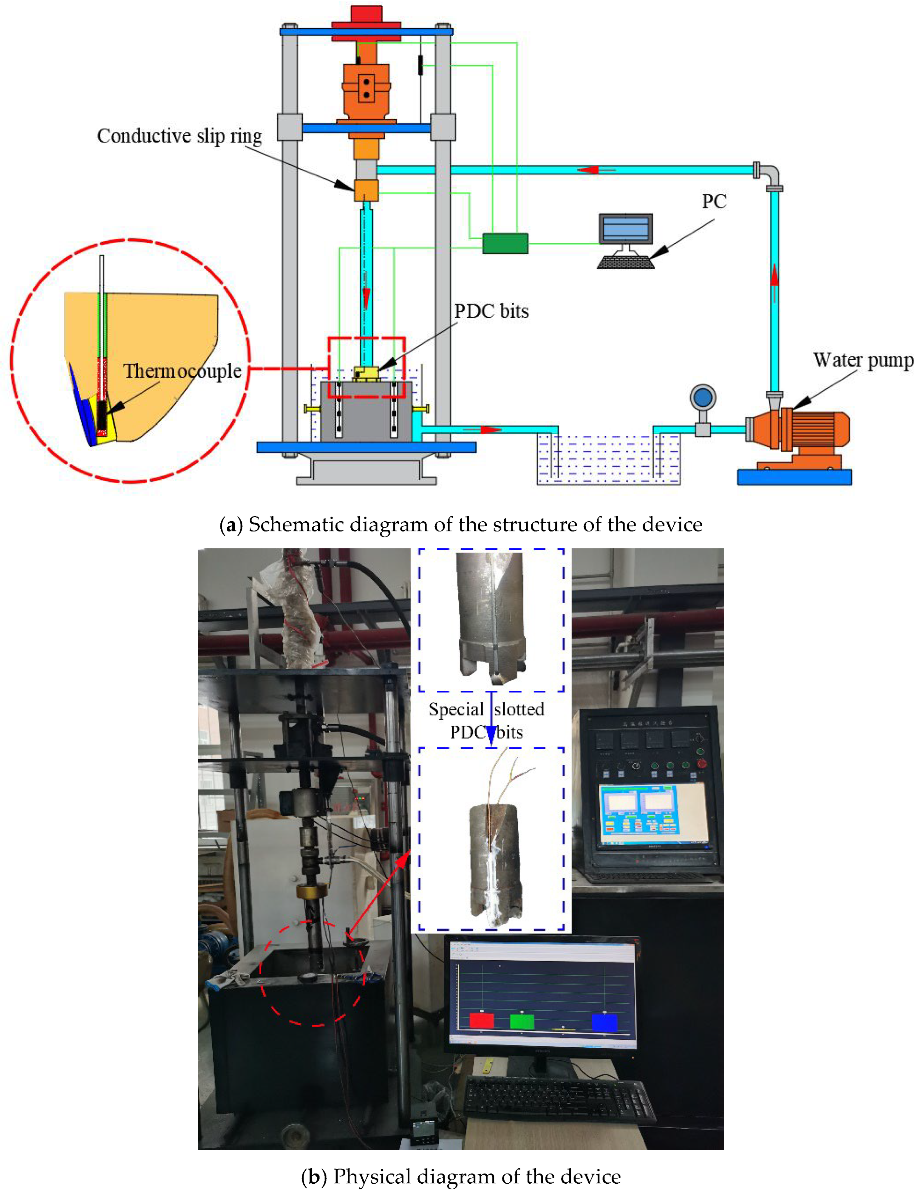 - Cai, C.; Zhang, P.; Xie, S.; Ren, H.-T.; Zhang, C.-L. Rock breakage and temperature variation of naturally worn PDC tooth during cutting of hard rock and soft rock. Geoenergy Sci. Eng. 2023, 229, 212042. [Google Scholar] [CrossRef]