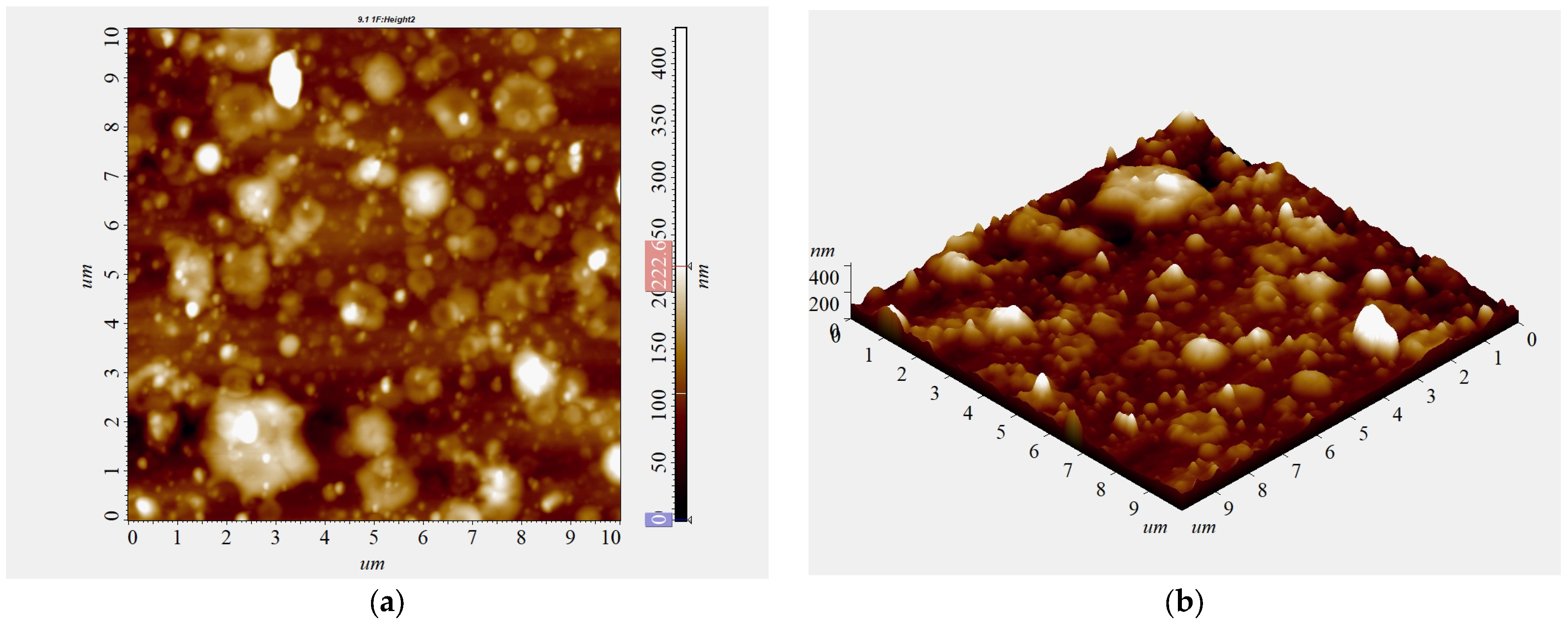 To determine the thickness of coatings on metal substrates, AFM images of the deposit surfaces at scratch locations were analyzed.