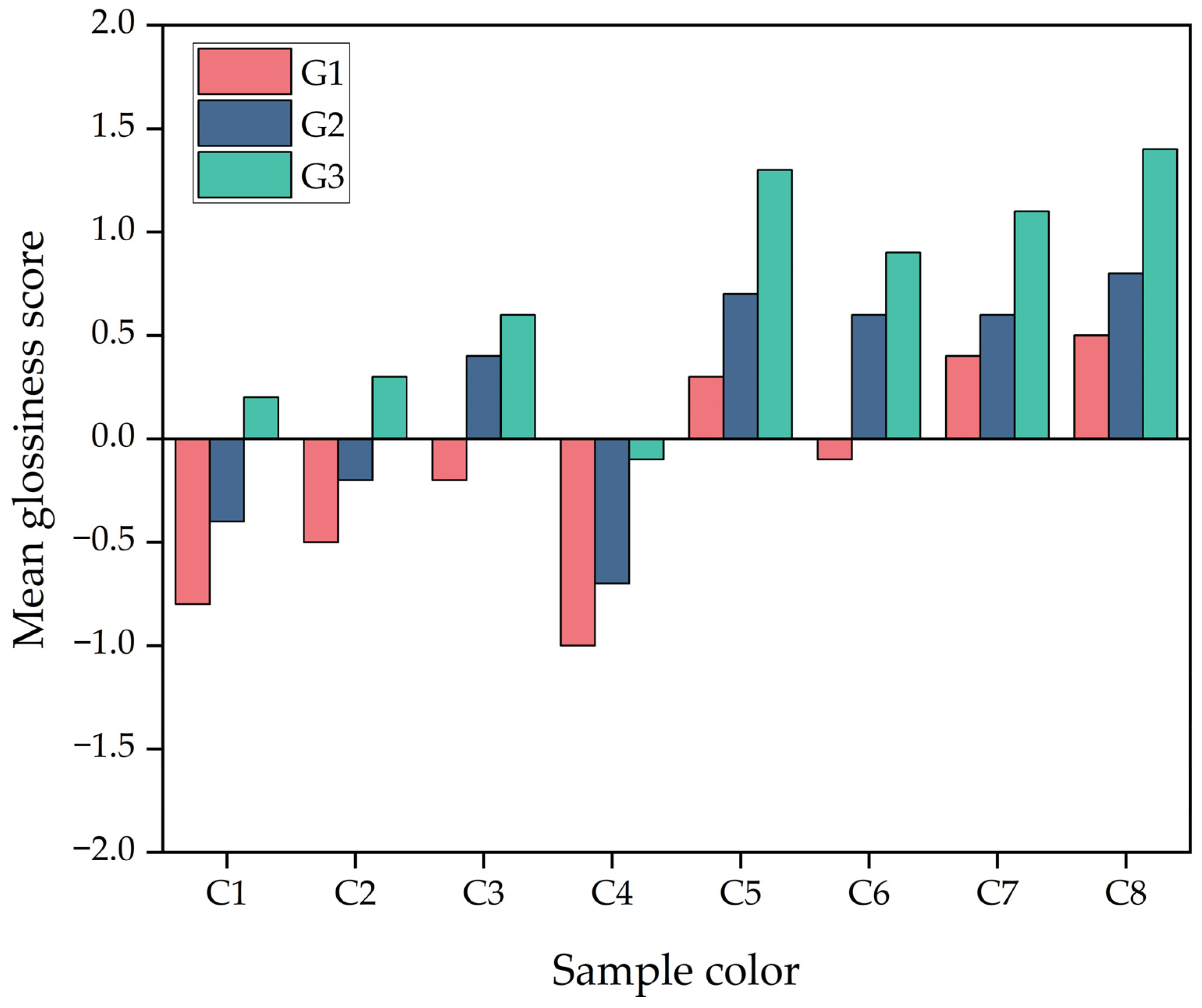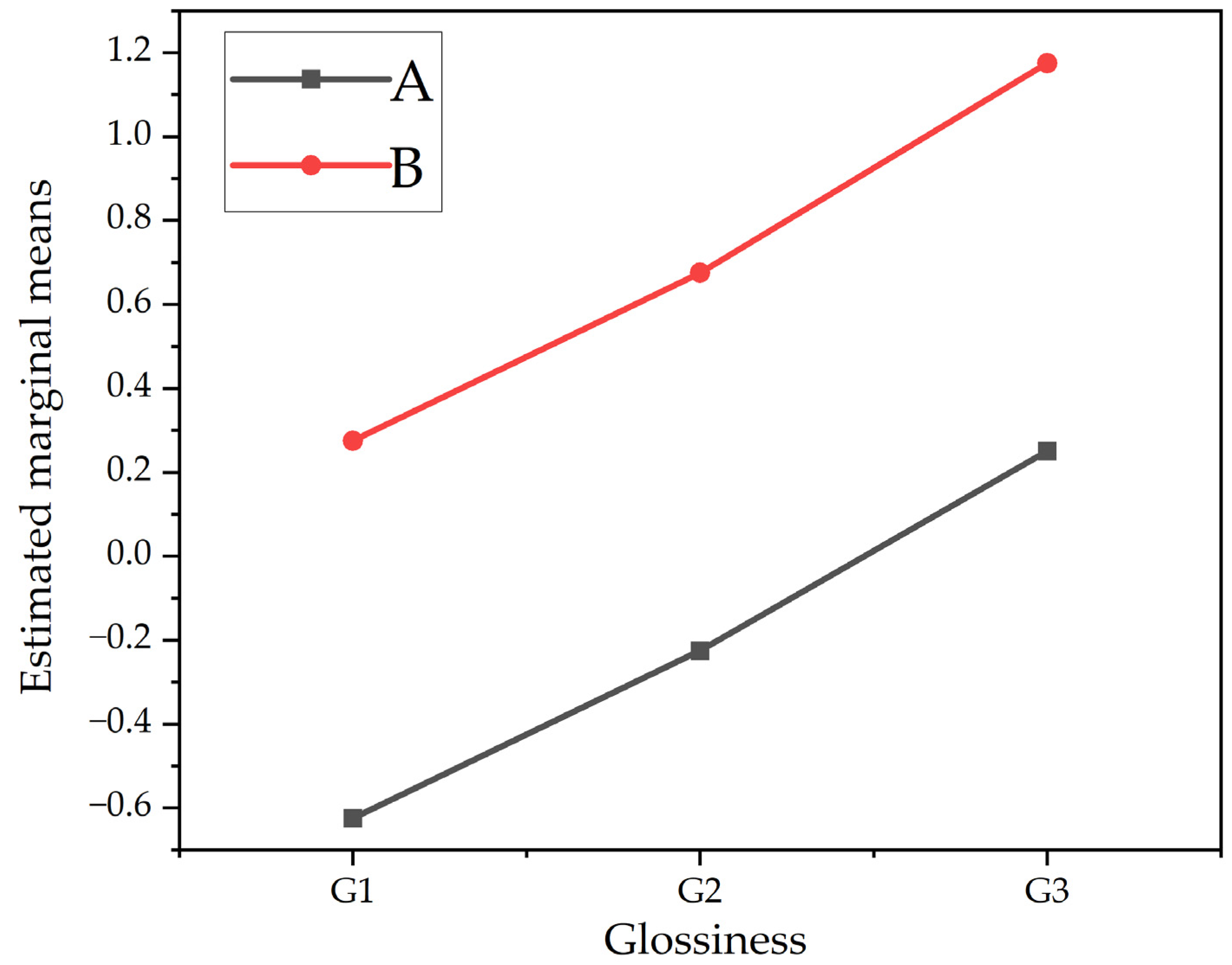 4.2. Relationship Between Elder Visual Preference and Glossiness