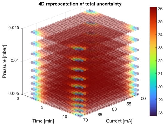 Figure 9), in which the X-axis represents the discharge current, the Y-axis represents the deposition time, and the Z-axis represents the pressure. The color of the points indicates the total model uncertainty. Active learning enables a systematic and targeted selection of new experimental points based on a formal assessment of model uncertainty. The proposed next measurement is directed toward the region with the highest informational value. This approach significantly enhances the efficiency of experimental design and provides a powerful tool for process optimization under limited resources.