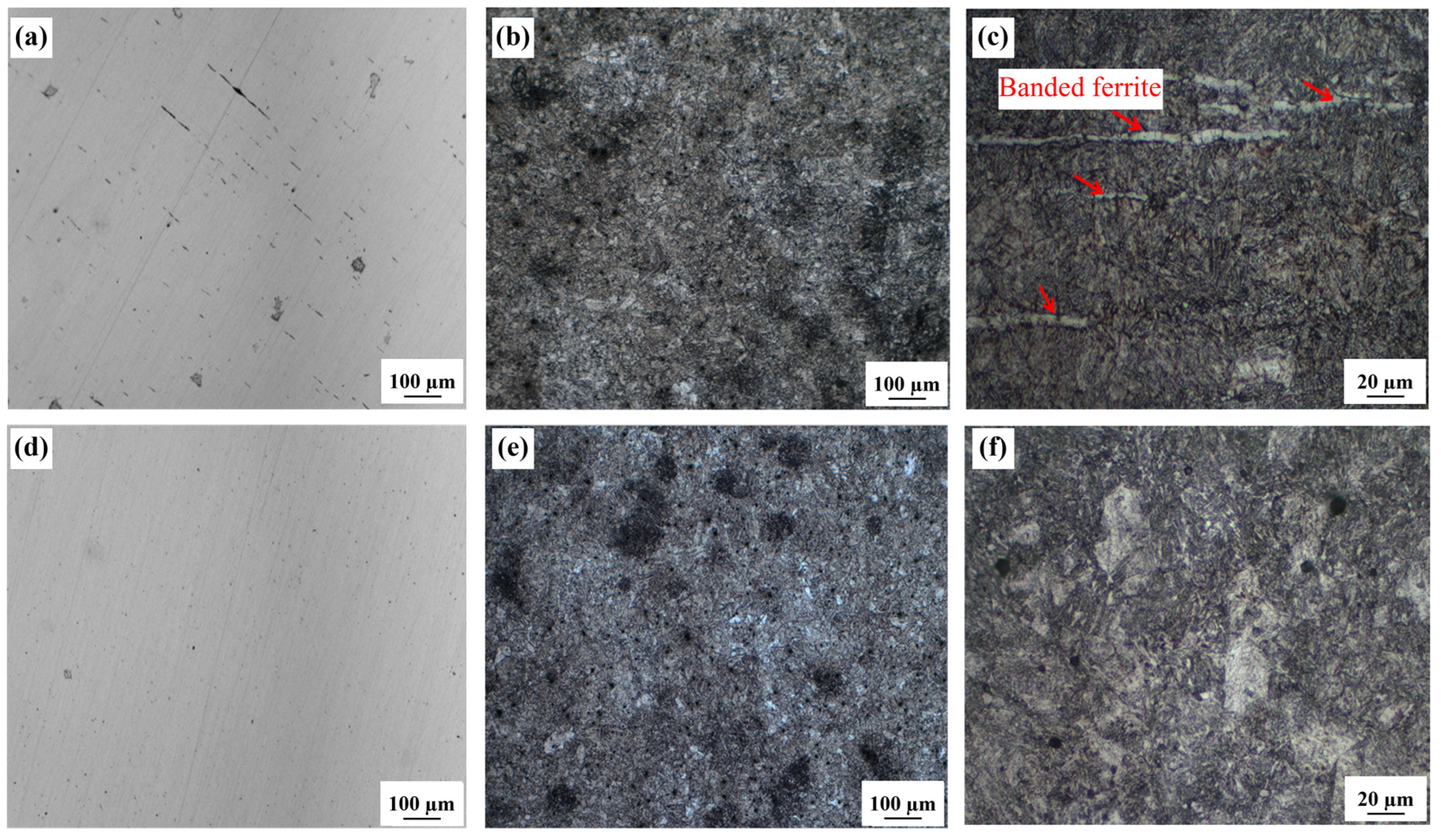 - Zhang, X.; Wang, Y.; Guo, N.; Wang, Y.; Li, R.; Zhang, C.; Zhu, Y. Effect of ferrite/pearlite banded structure on the local deformation and crack initiation at notches in pipeline steel. Eng. Fract. Mech. 2020, 237, 107244. [Google Scholar] [CrossRef]