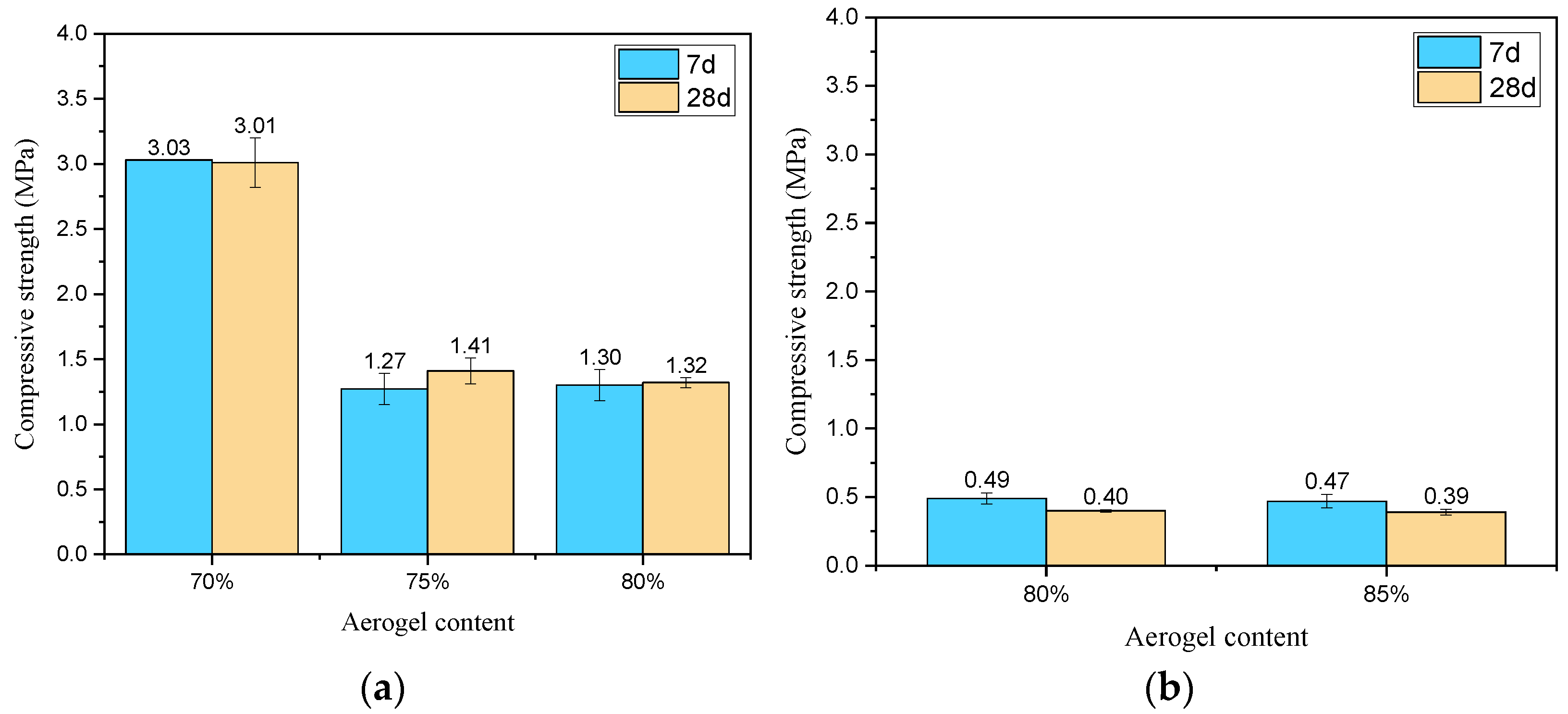 | Group | W/B Ratio 1 | Volume Dosage of Aerogel | Mass Ratio of Aerogel to Precursor |