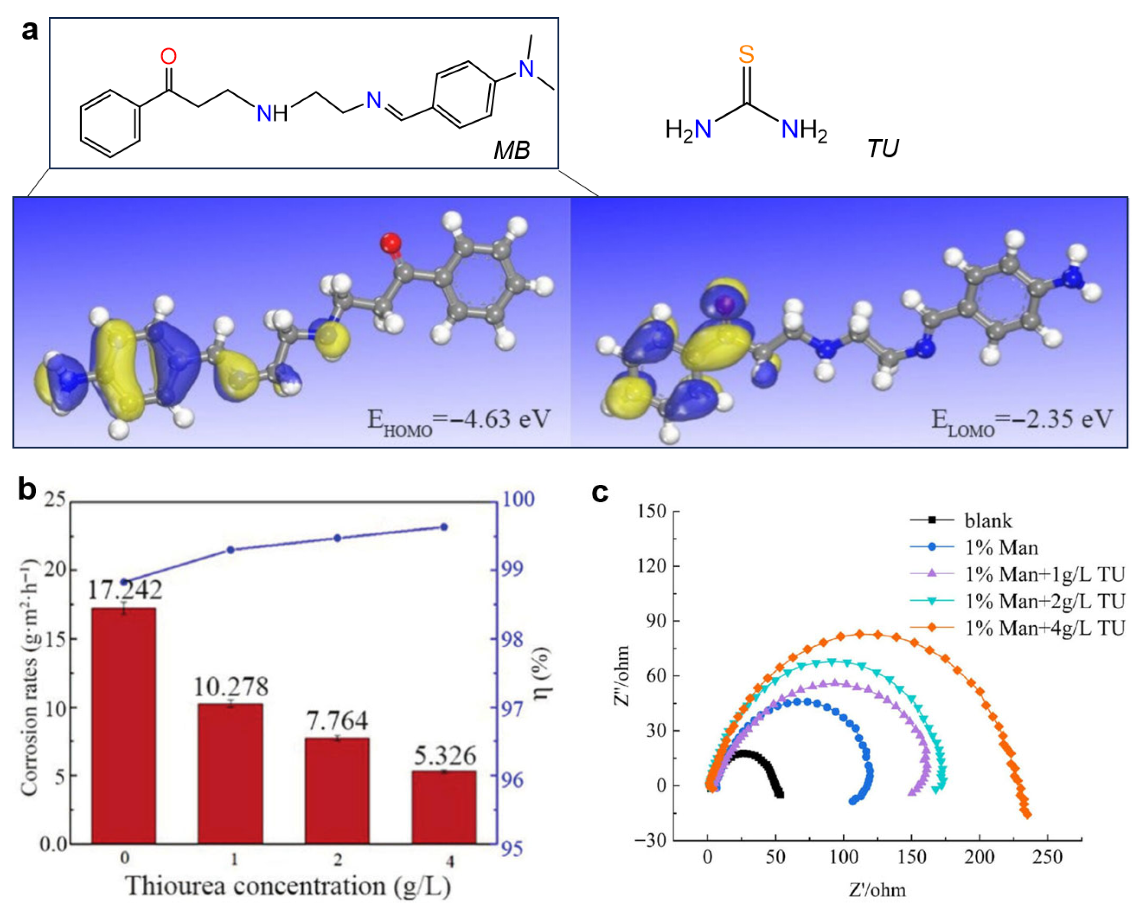- Zhang, X.Y.; Zhang, Y.H.; Su, Y.X.; Guan, S. Enhancing the corrosion inhibition performance of Mannich base on mild steel in lactic acid solution through synergistic effect of allicin: Experimental and theoretical study. J. Mol. Struct. 2024, 1304, 137658. [Google Scholar] [CrossRef]