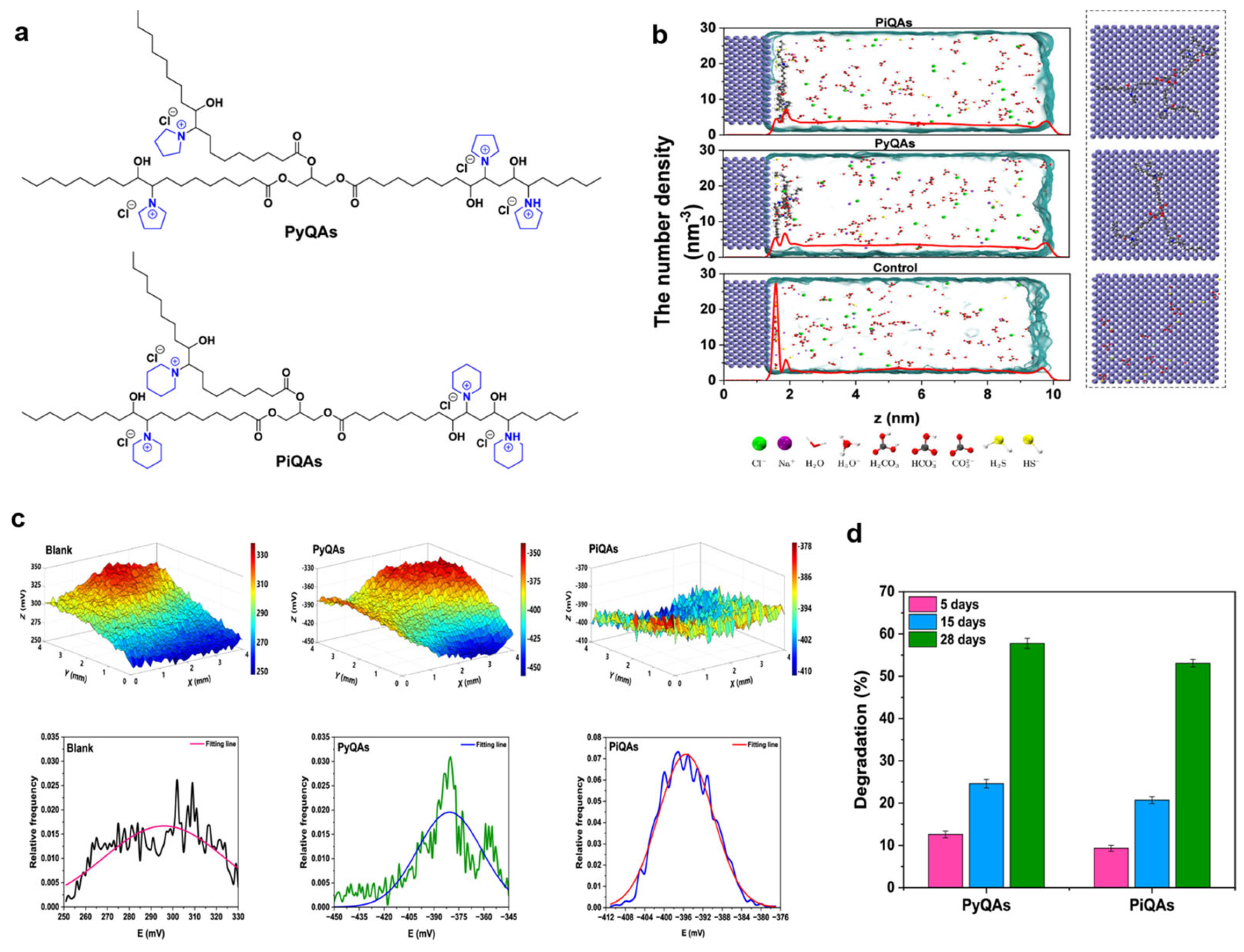 - Qin, M.; Zhu, Z.; Liu, Y.; Ye, N.; Chen, Y.; Zhang, S.; Lyu, X.; Leng, J.; Liao, K. The relationship between adsorption-desorption and inhibition efficiency of imidazoline quaternary ammonium salt under flow. J. Ind. Eng. Chem. 2025, 153, 653–664. [Google Scholar] [CrossRef]