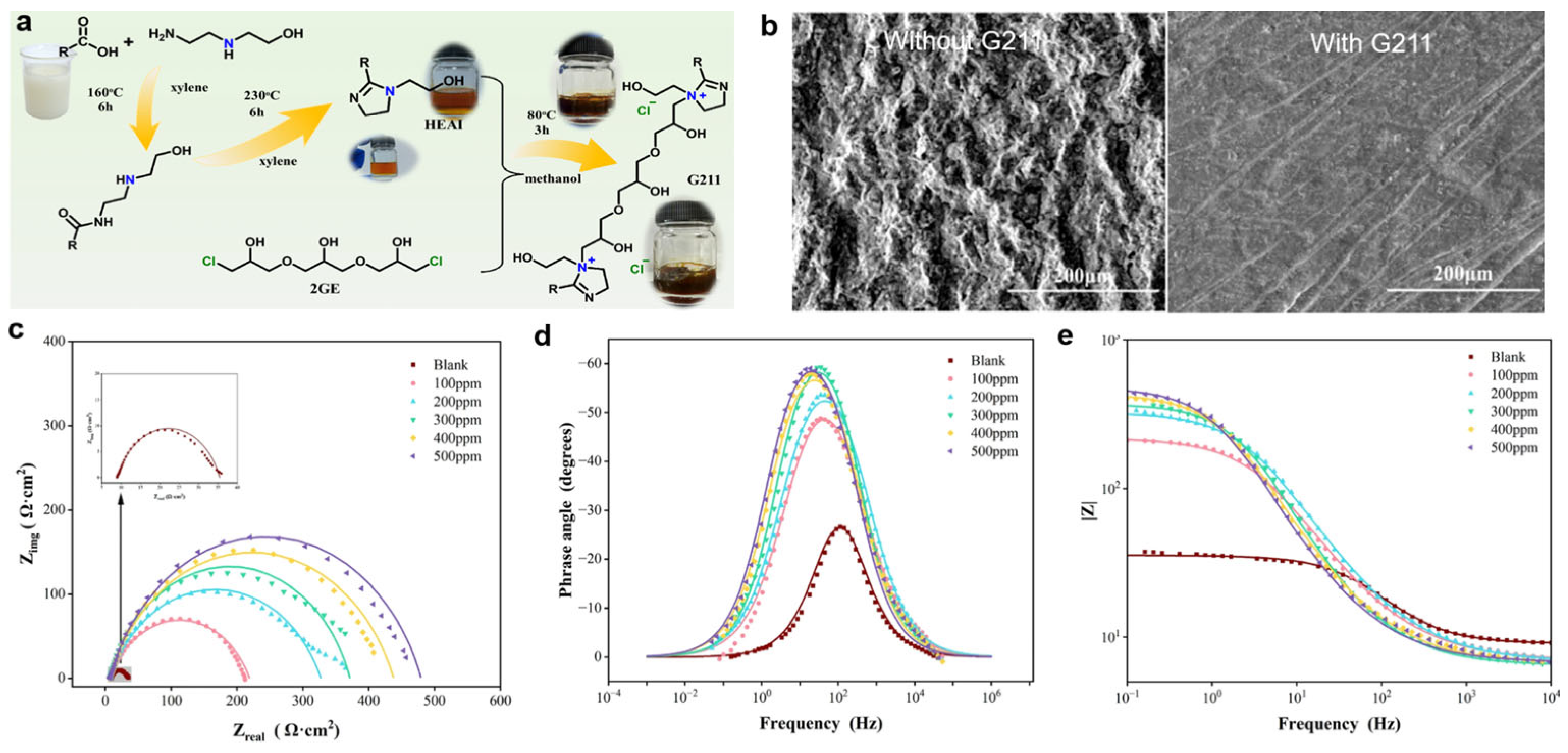 - Zou, B.; Liang, W.; Gai, P.Y.; Chen, X.C.; Cheng, S.J.; Fu, C.Y. Corrosion Inhibition Behavior of Imidazoline Rich in Double Bonds in Saturated CO2 Brine. Chem. Eng. Oil Gas 2024, 53, 78–86. [Google Scholar]