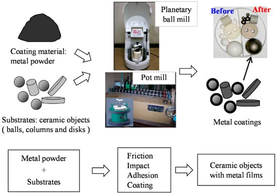 - Hao, L.; Yoshida, H.; Itoi, T.; Lu, Y. Preparation of Metal Coatings on Steel Balls Using Mechanical Coating Technique and Its Process Analysis. Coatings 2017, 7, 53. [Google Scholar] [CrossRef]