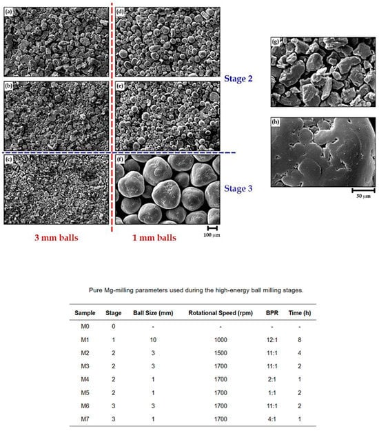- Rios, J.; Restrepo, A.; Zuleta, A.; Bolívar, F.; Castaño, J.; Correa, E.; Echeverria, F. Effect of ball size on the microstructure and morphology of Mg powders processed by high-energy ball milling. Metals 2021, 11, 1621. [Google Scholar] [CrossRef]