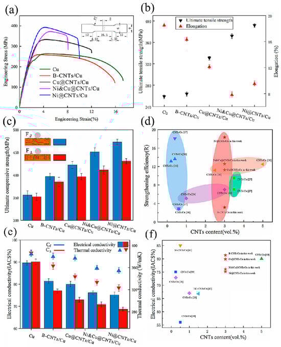 - Zheng, Z.; Yang, A.; Tao, J.; Li, J.; Zhang, W.; Li, X.; Xue, H. Mechanical and Conductive Properties of Cu Matrix Composites Reinforced by Oriented Carbon Nanotubes with Different Coatings. Nanomaterials 2022, 12, 266. [Google Scholar] [CrossRef]
