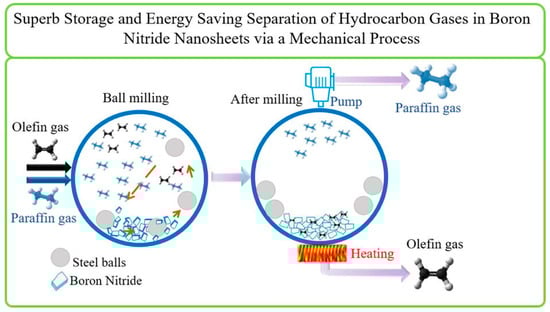 - Mateti, S.; Zhang, C.; Du, A.; Periasamy, S.; Chen, Y.I. Superb storage and energy saving separation of hydrocarbon gases in boron nitride nanosheets via a mechanochemical process. Mater. Today 2022, 57, 26–34. [Google Scholar] [CrossRef]