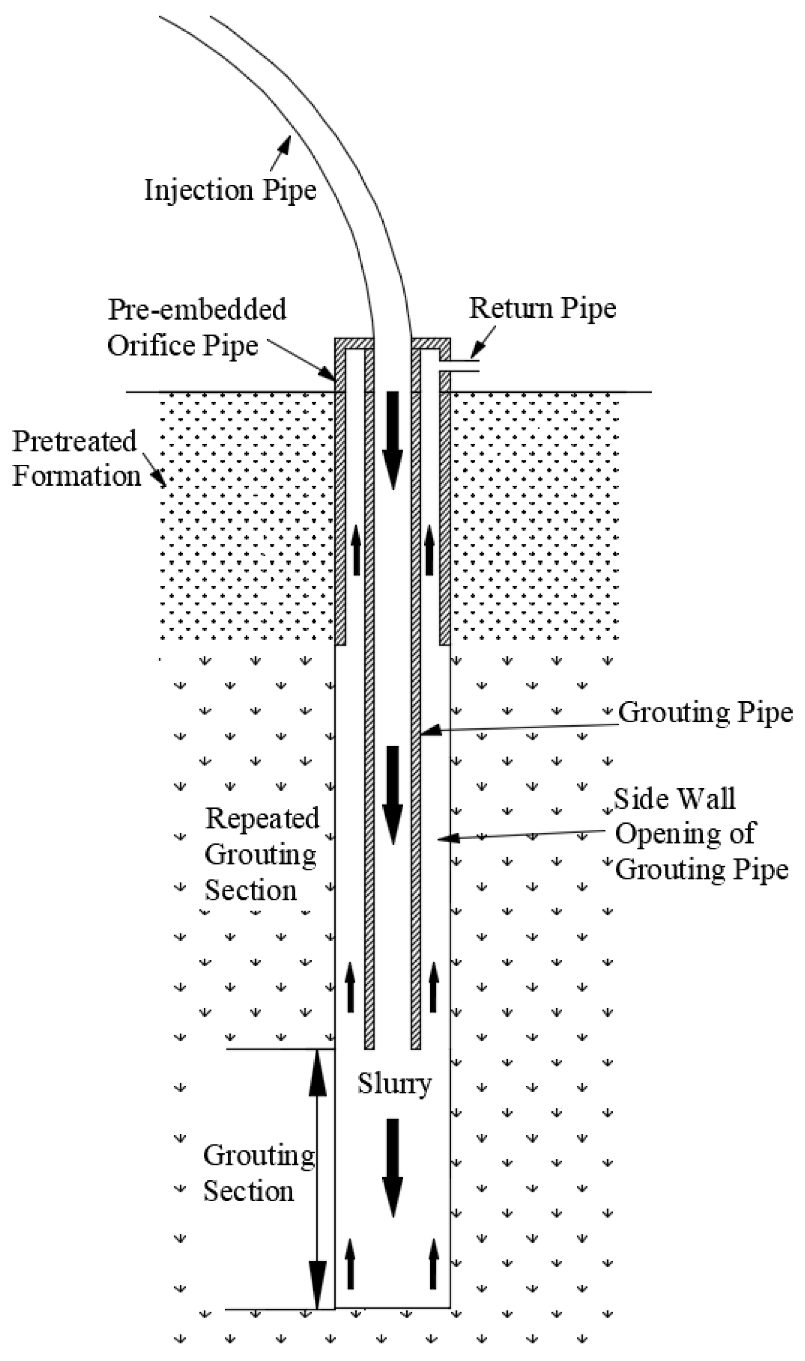 - Ouyang, J.W.; Zhang, G.J.; Liu, J. Diffusion mechanism of split grouting. Chin. J. Geotech. Eng. 2018, 40, 1328–1335. (In Chinese) [Google Scholar]
